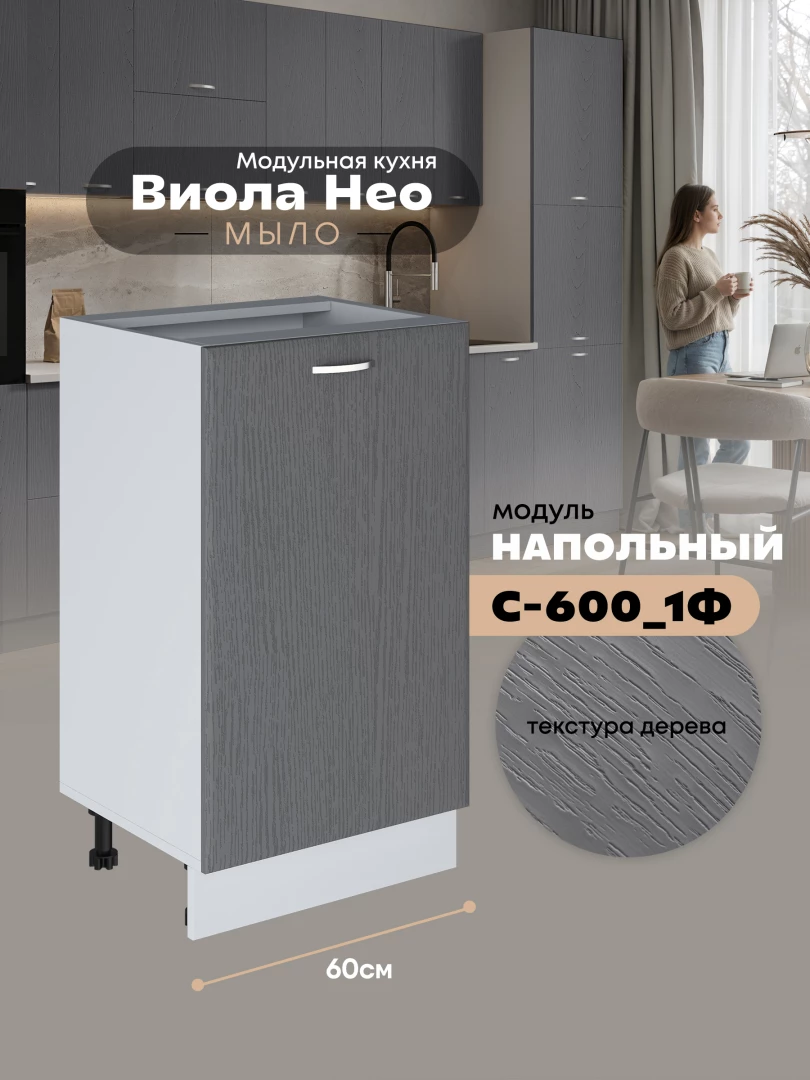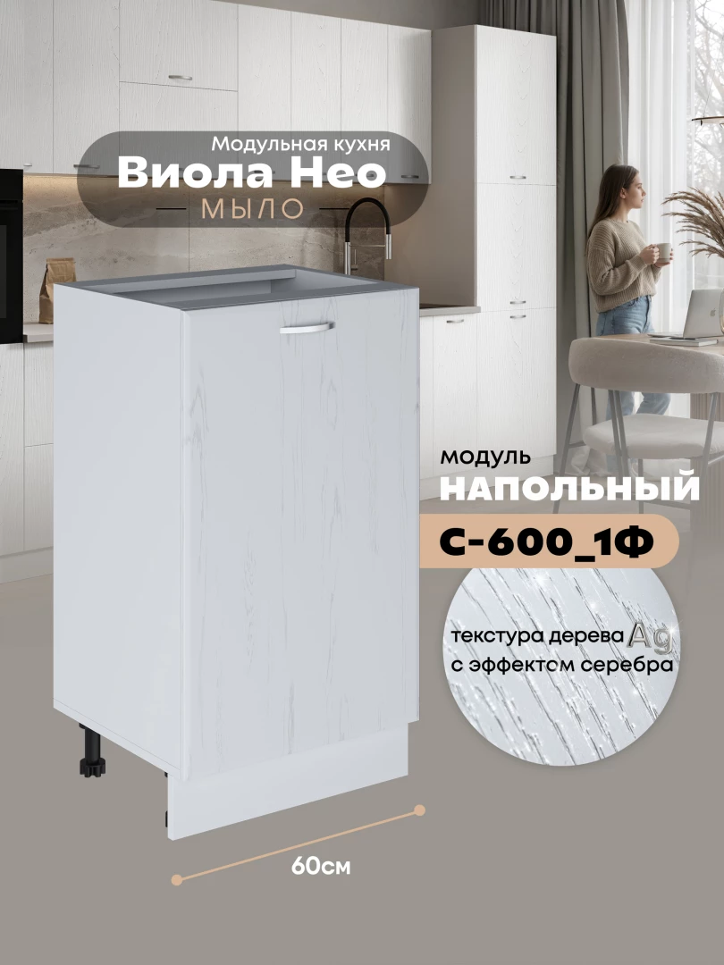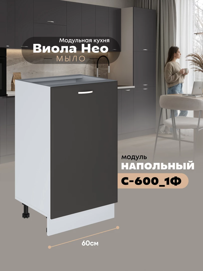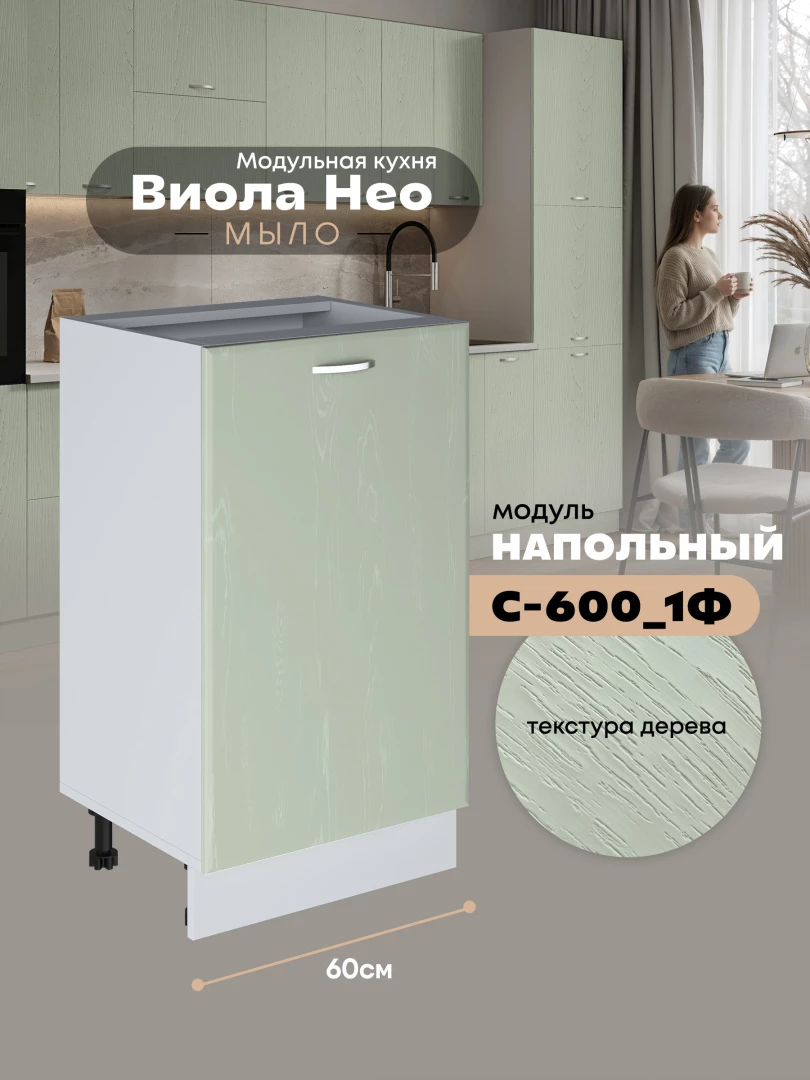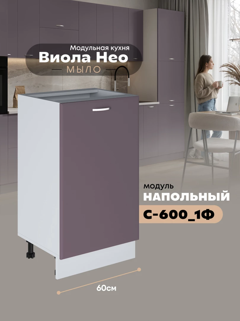 Кухонный модуль напольный с одной створкой Виола Нео Мыло С-600_1Ф Матовый