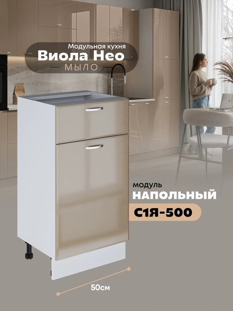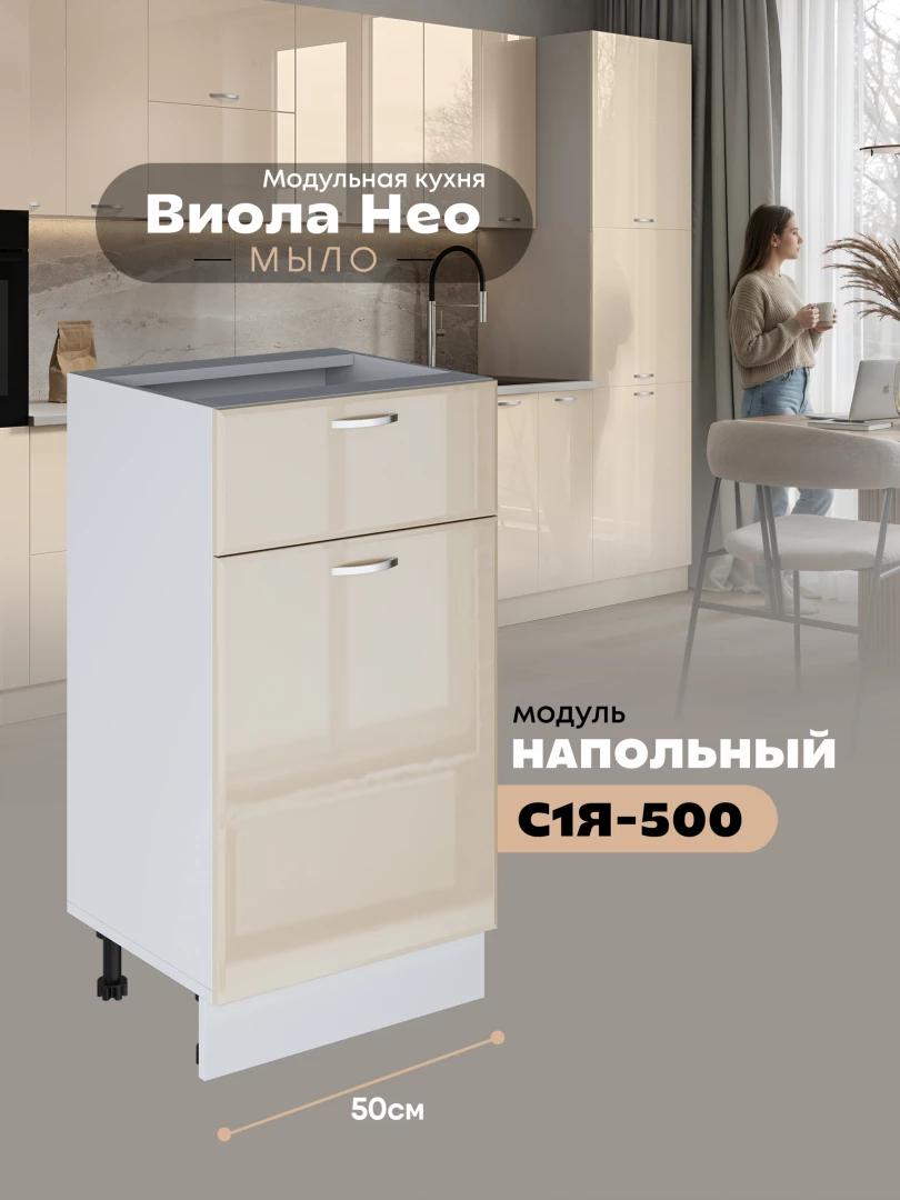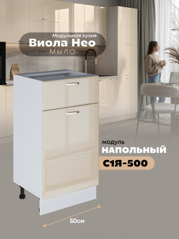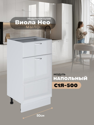 Кухонный модуль напольный с выдвижным ящиком и створкой Виола Нео Мыло С1Я-500 Глянцевый