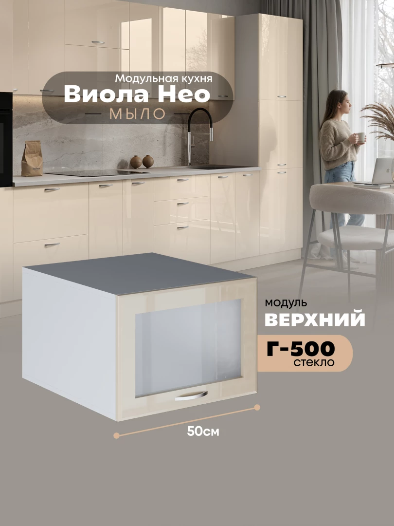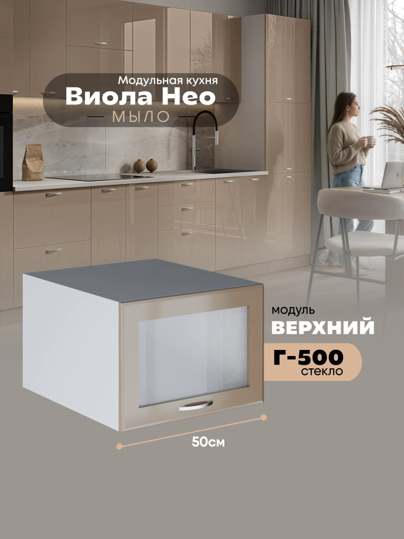 Кухонный модуль навесной горизонтальный (антресоль) Виола Нео Мыло Г-500-стекло Глянцевый