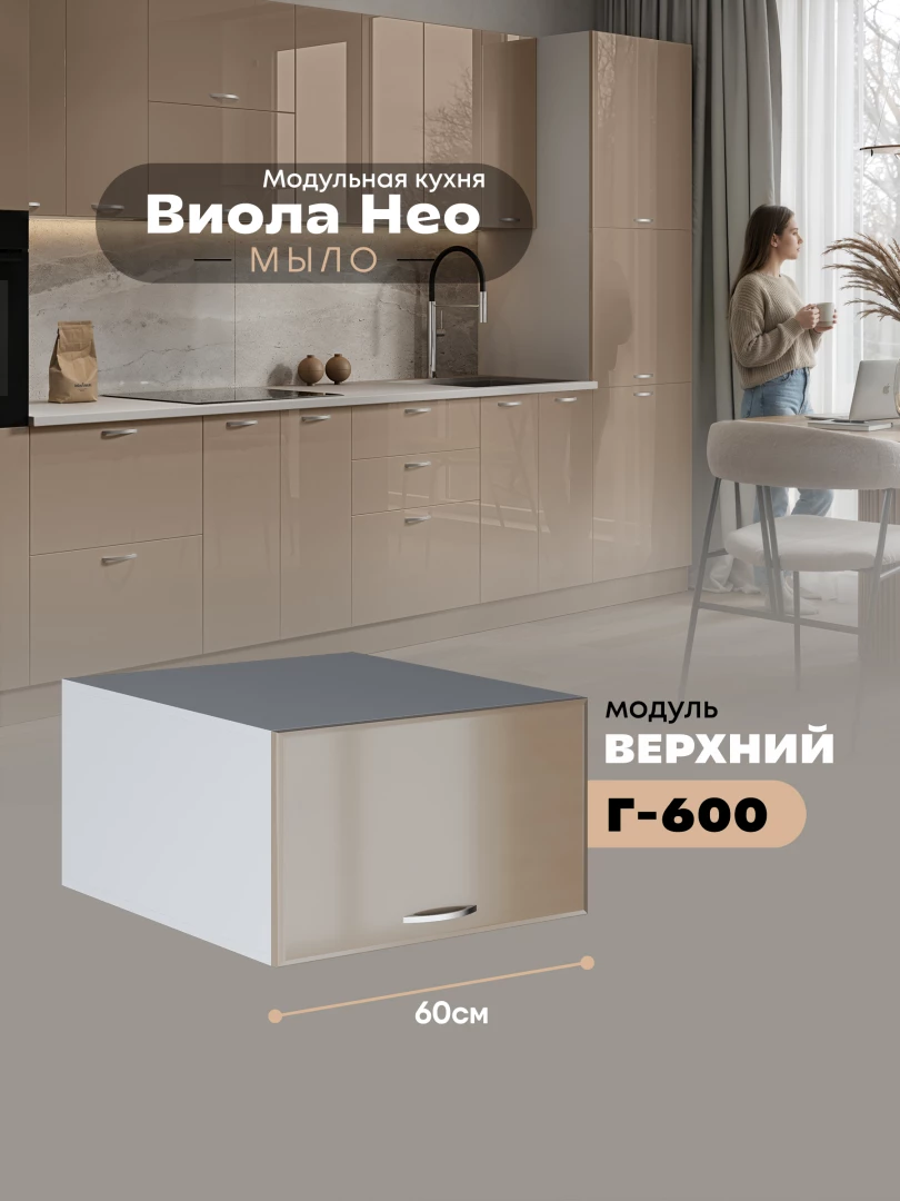 Кухонный модуль навесной горизонтальный (антресоль) Виола Нео Мыло Г-600 Глянцевый