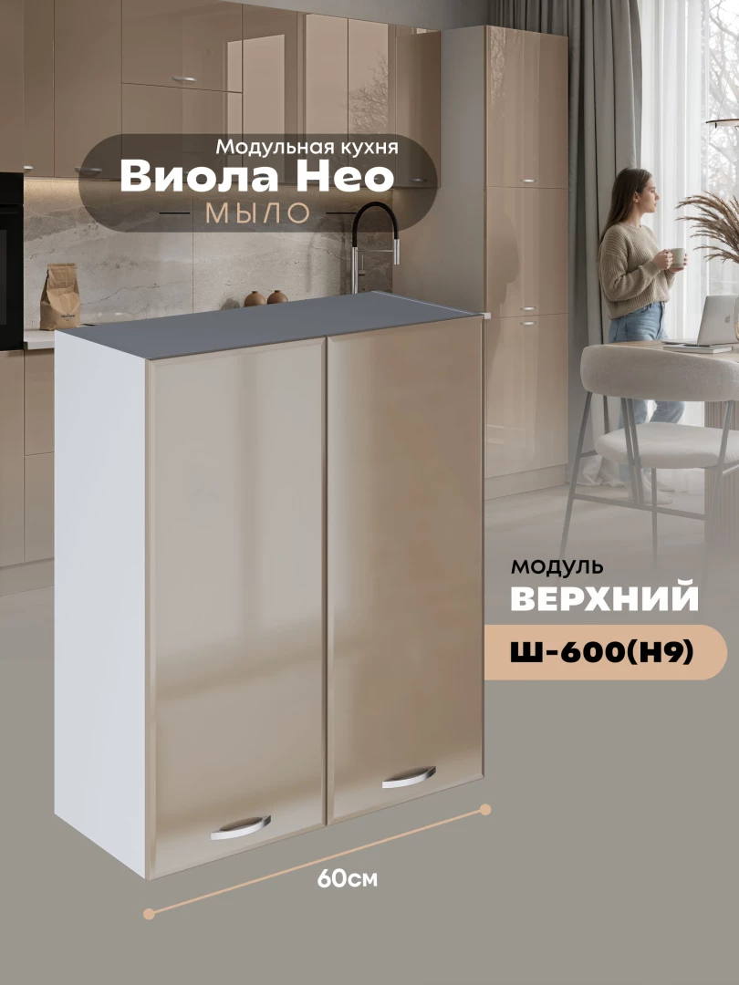 Кухонный модуль навесной с двумя створками Виола Нео Мыло Ш-600(Н9) Глянцевый