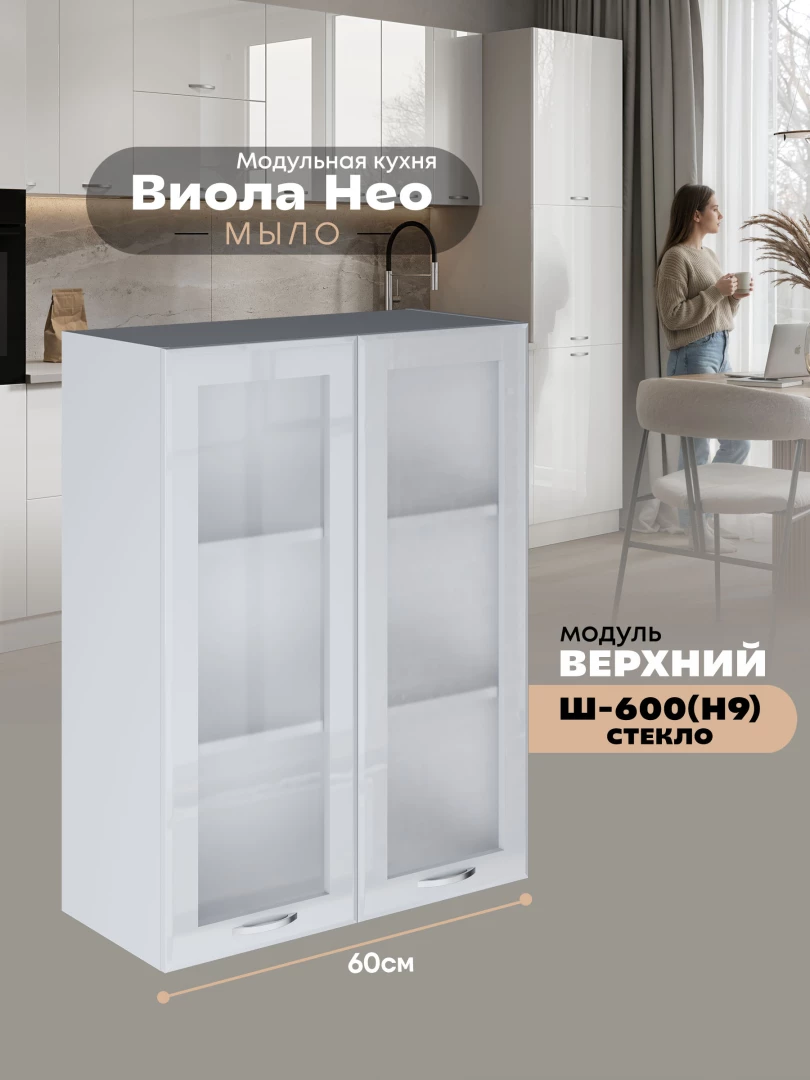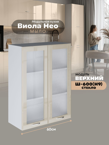 Кухонный модуль навесной с двумя створками Виола Нео Мыло Ш-600(Н9)-стекло Глянцевый