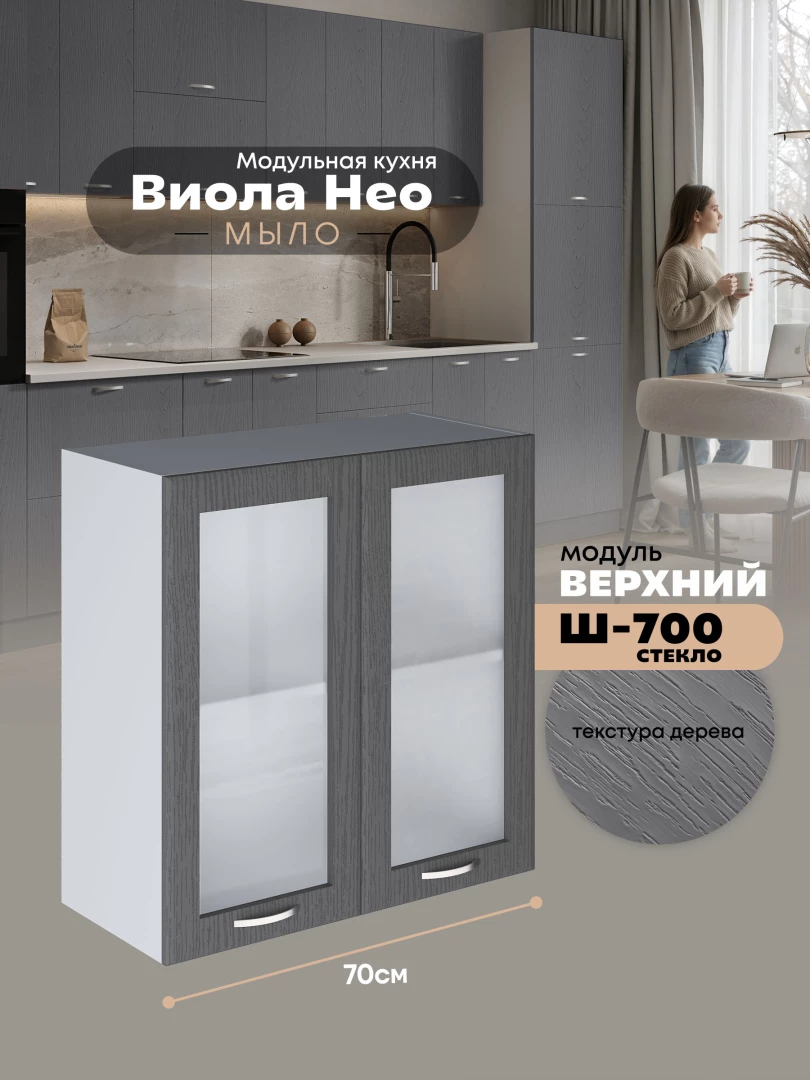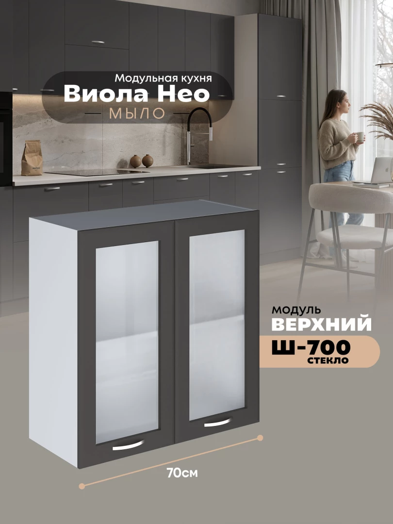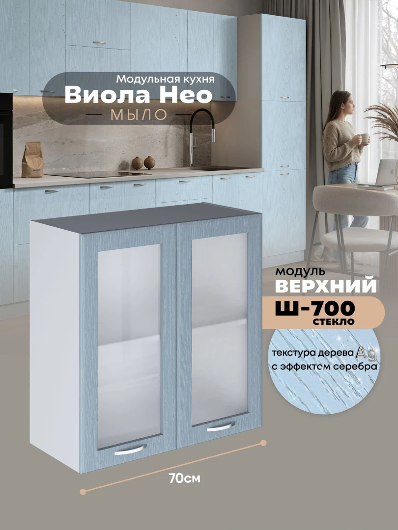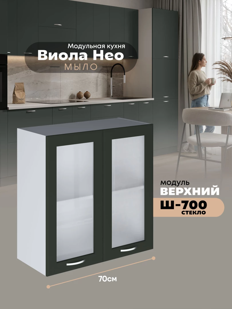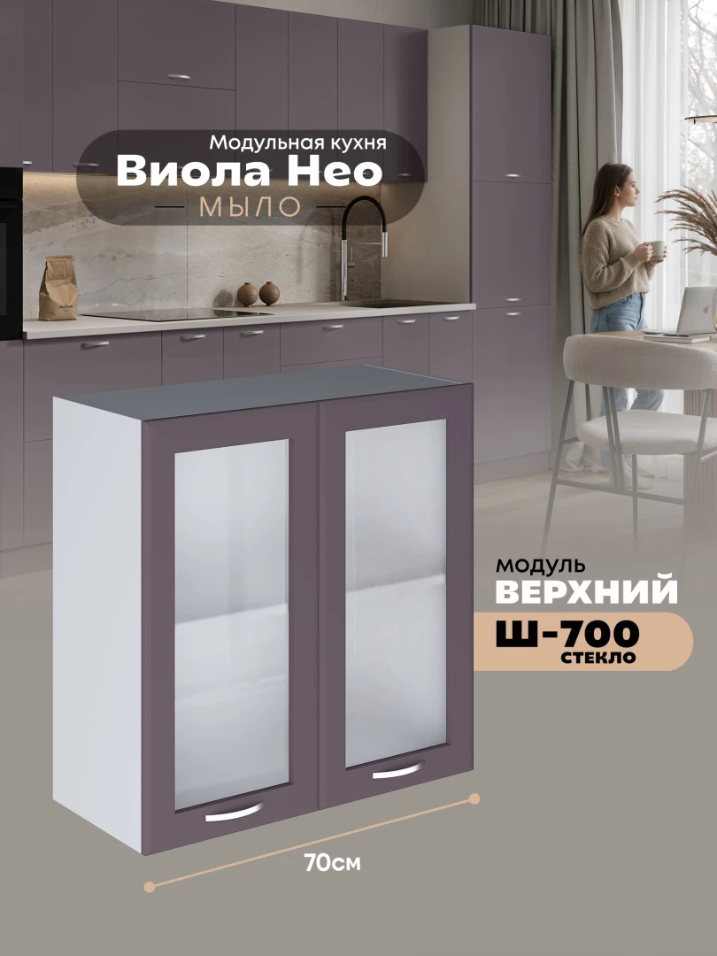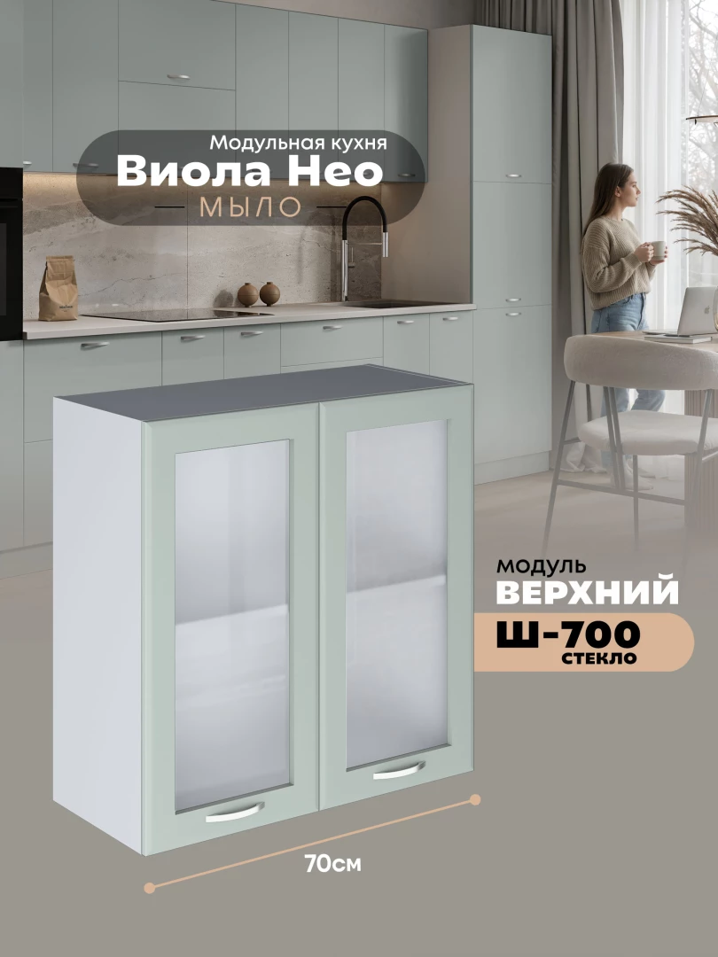 Кухонный модуль навесной с двумя створками Виола Нео Мыло Ш-700-стекло Матовый