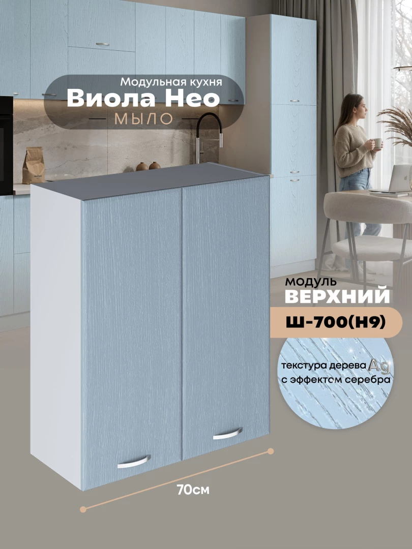 Кухонный модуль навесной с двумя створками Виола Нео Мыло Ш-700(Н9) Матовый
