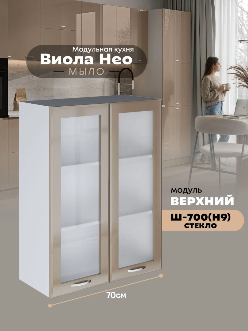 Кухонный модуль навесной с двумя створками Виола Нео Мыло Ш-700(Н9)-стекло Глянцевый