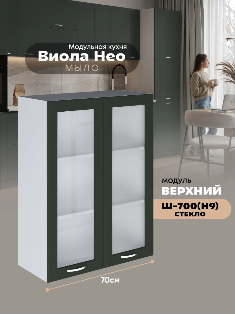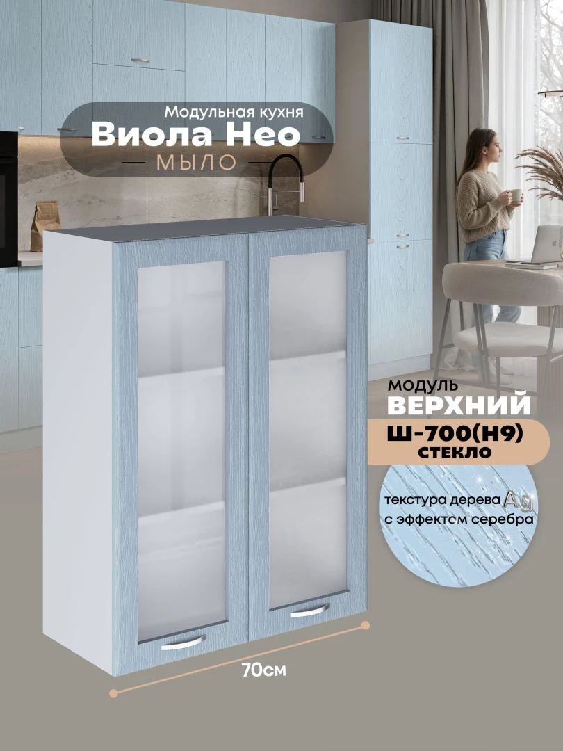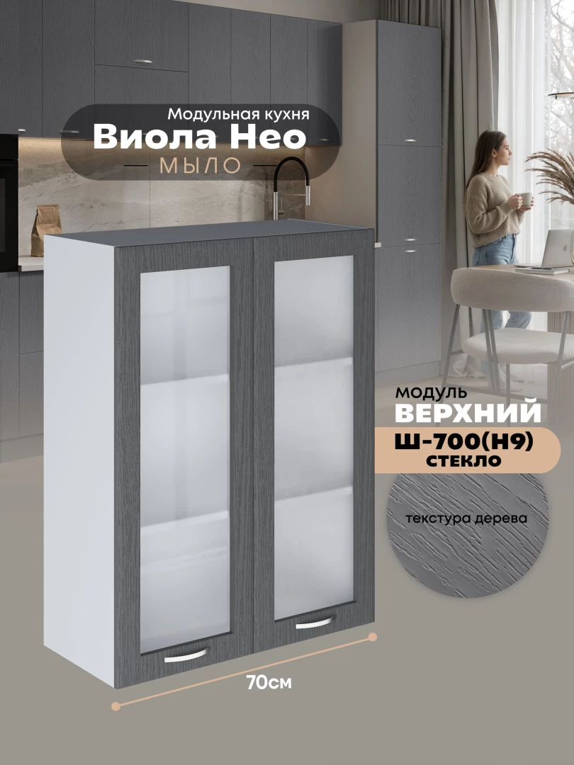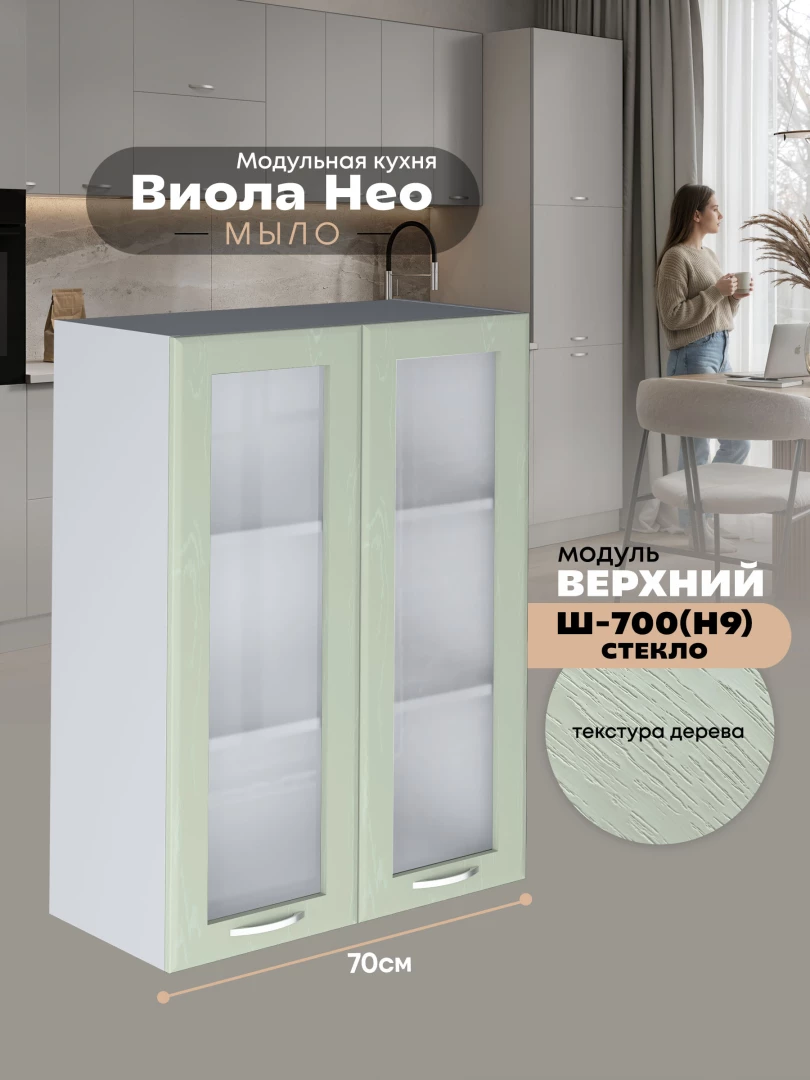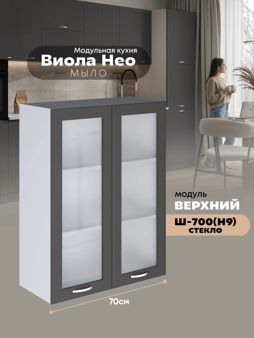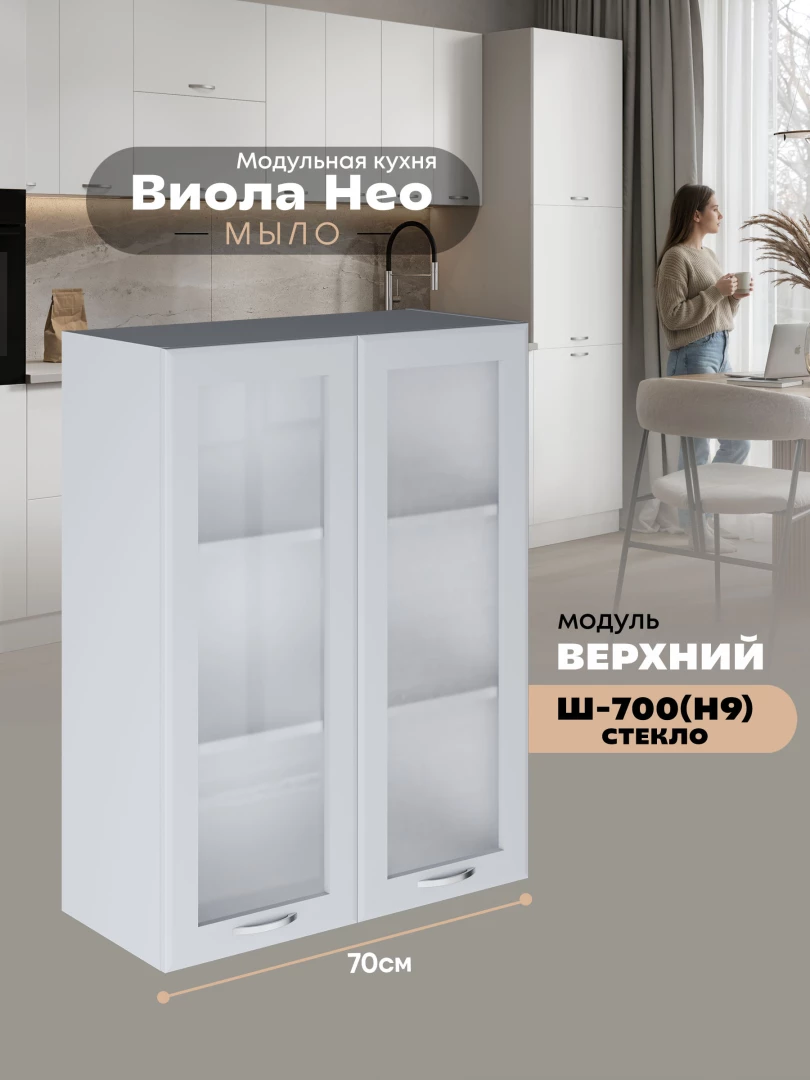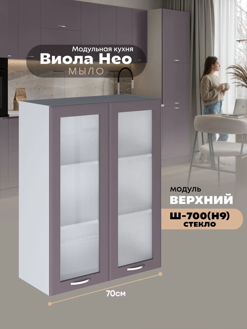 Кухонный модуль навесной с двумя створками Виола Нео Мыло Ш-700(Н9)-стекло Матовый