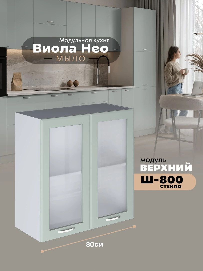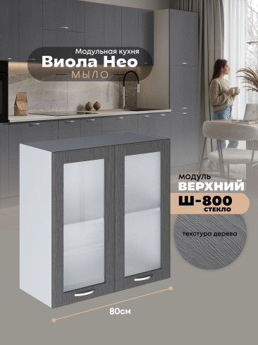Кухонный модуль навесной с двумя створками Виола Нео Мыло Ш-800-стекло Матовый
