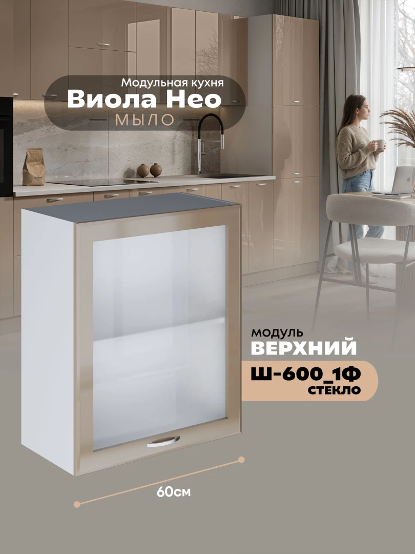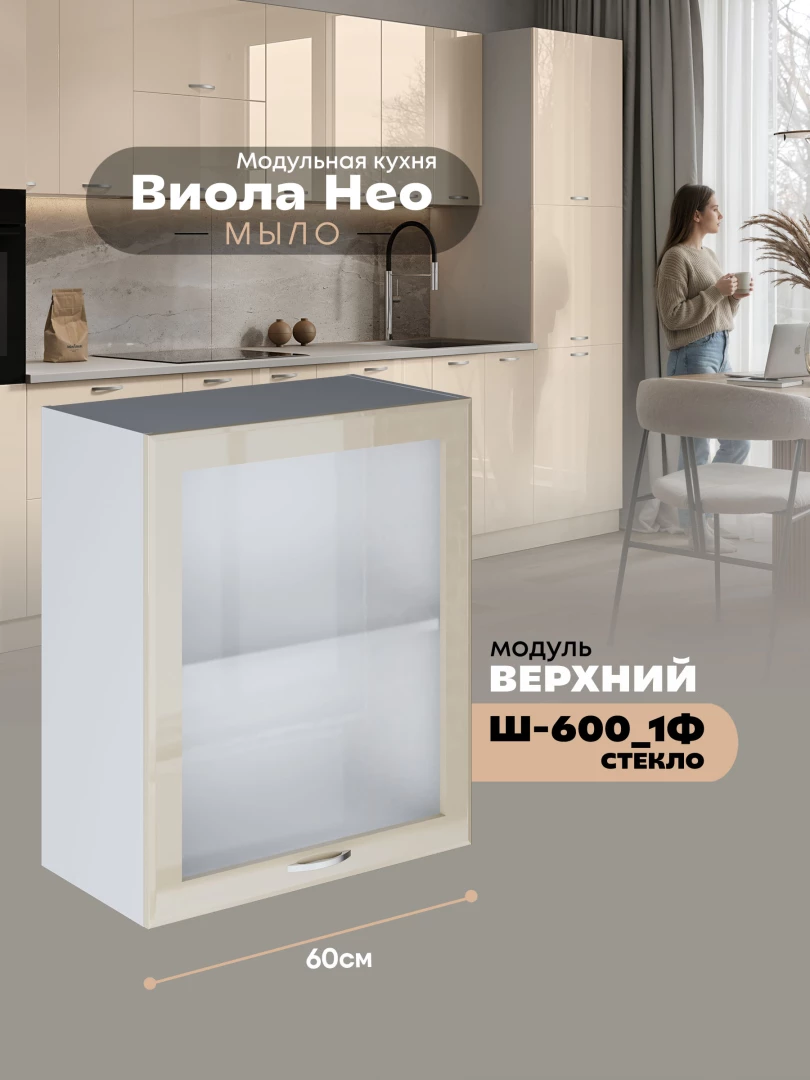 Кухонный модуль навесной с одной створкой Виола Нео Мыло Ш-600_1Ф-стекло Глянцевый