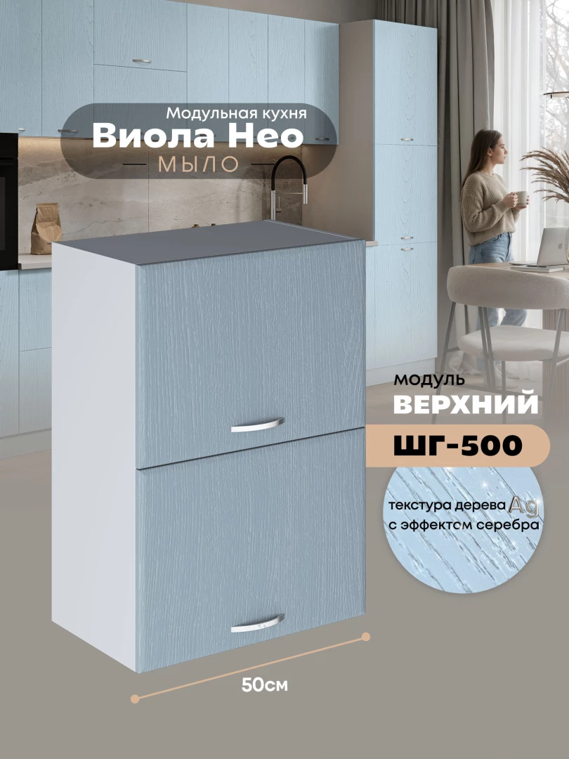 Кухонный модуль навесной с откидными створками Виола Нео Мыло ШГ-500 Матовый