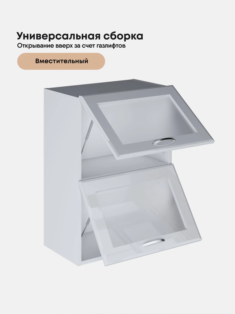 Кухонный модуль навесной с откидными створками Виола Нео Мыло ШГ-500-стекло Глянцевый