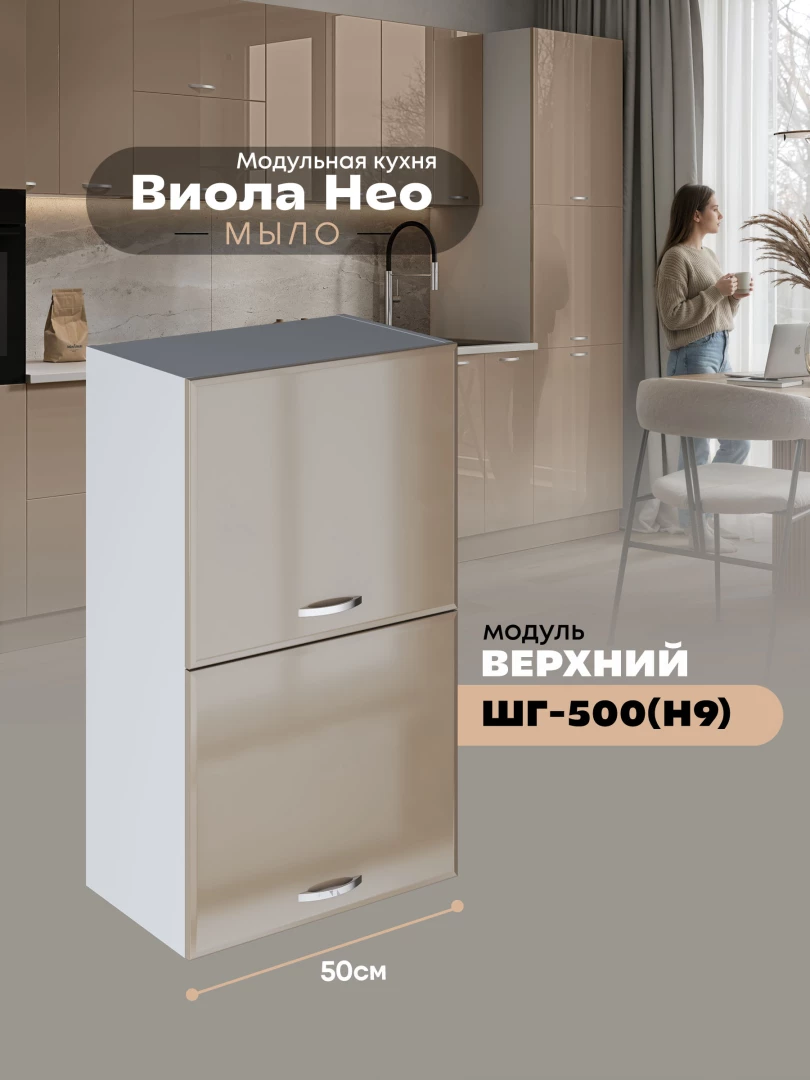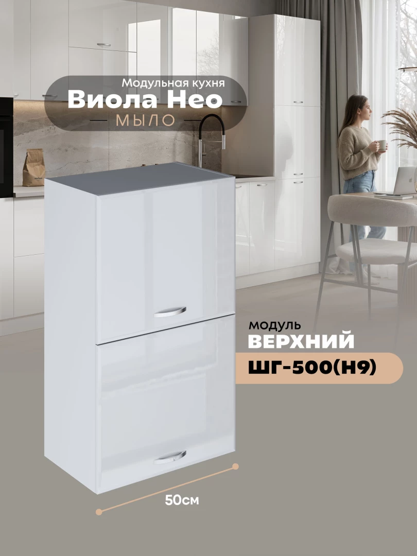 Кухонный модуль навесной с откидными створками Виола Нео Мыло ШГ-500(Н9) Глянцевый