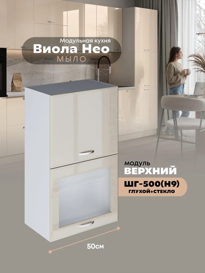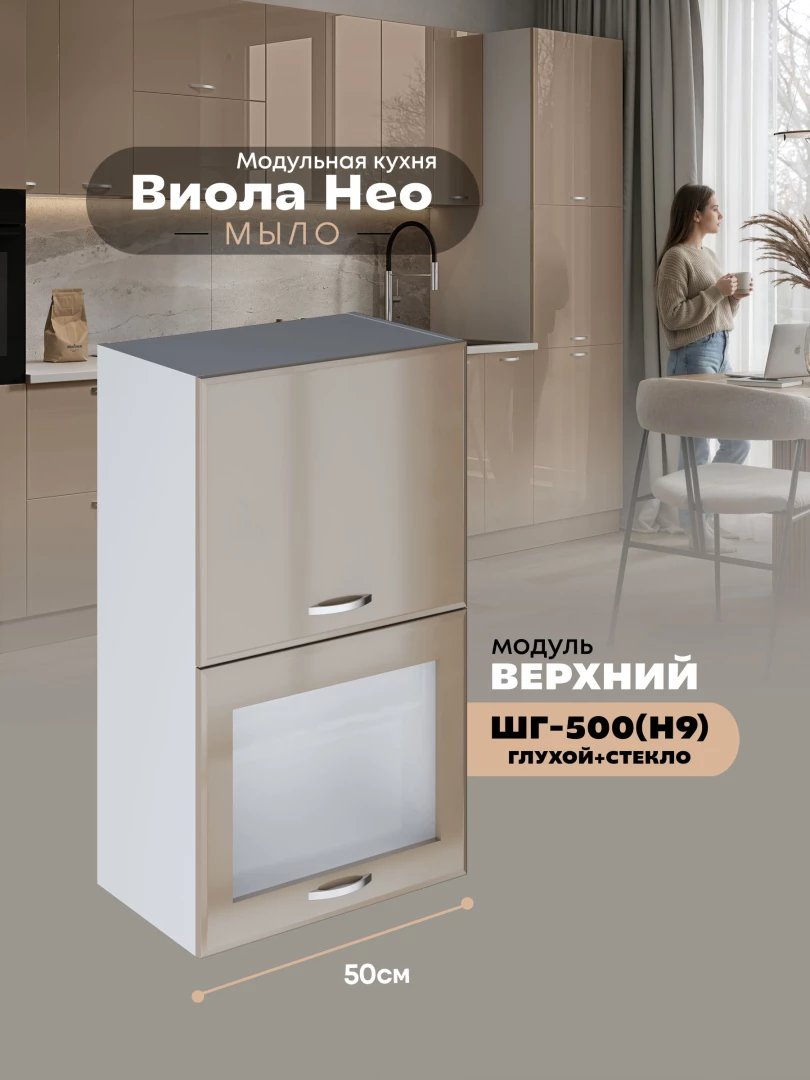 Кухонный модуль навесной с откидными створками Виола Нео Мыло ШГ-500(Н9) (глухой/стекло) Глянцевый