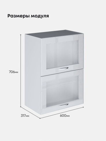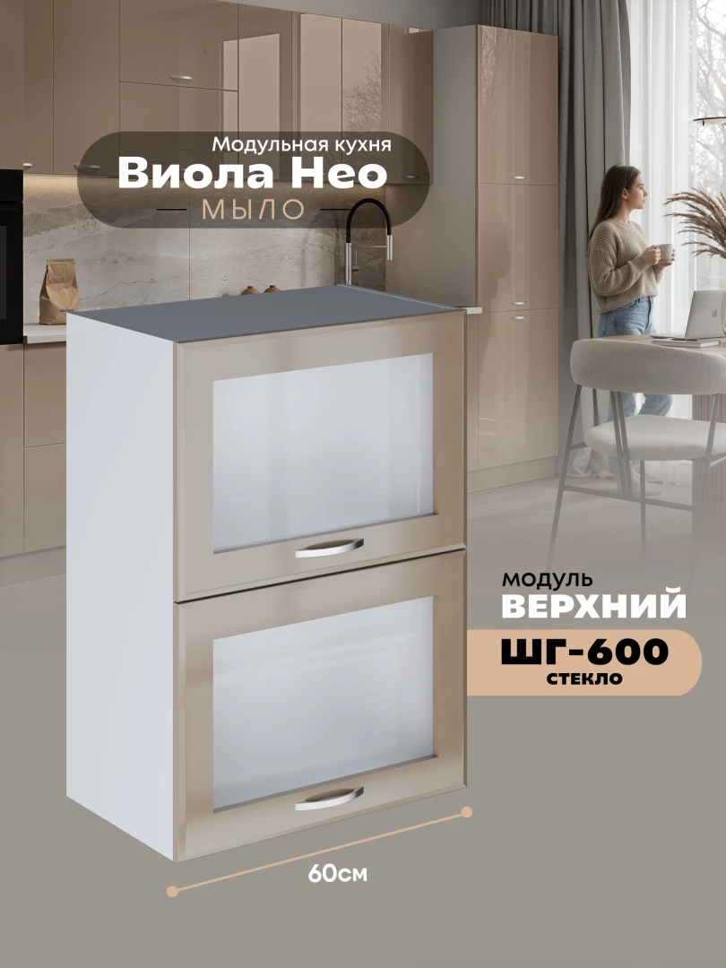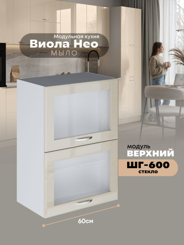 Кухонный модуль навесной с откидными створками Виола Нео Мыло ШГ-600-стекло Глянцевый