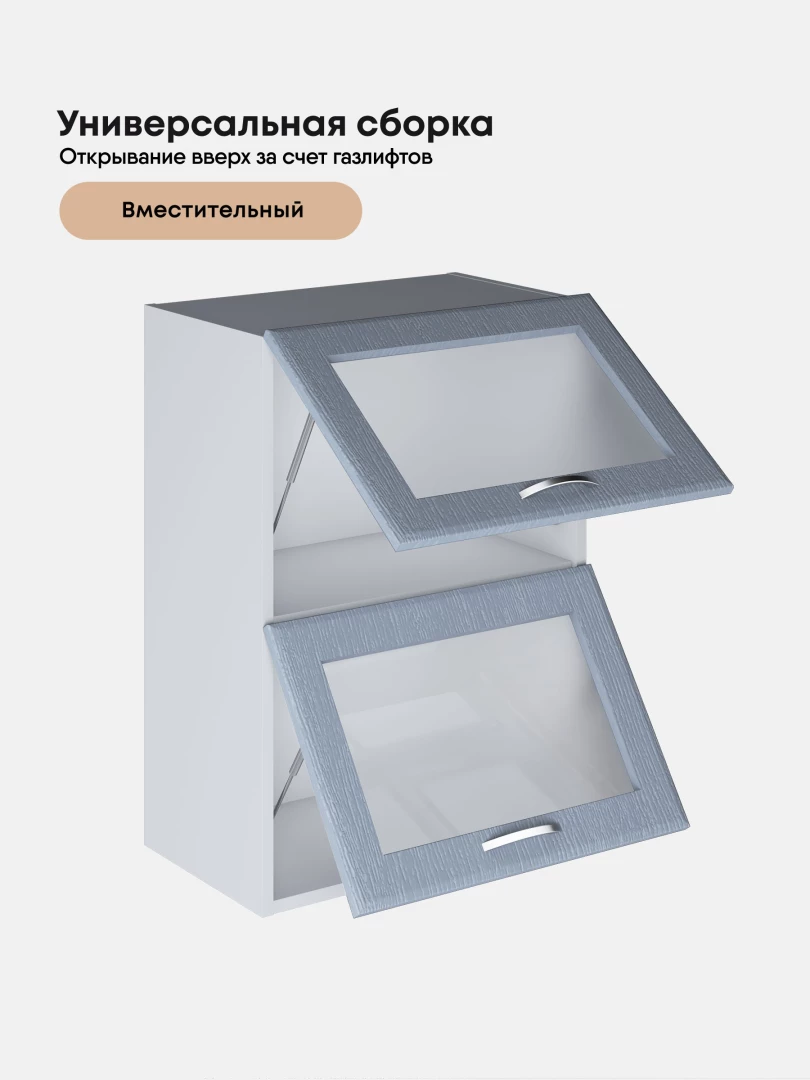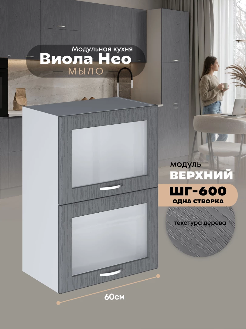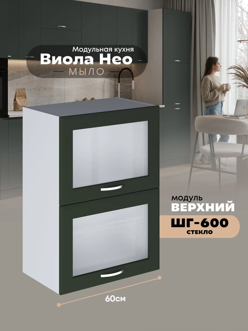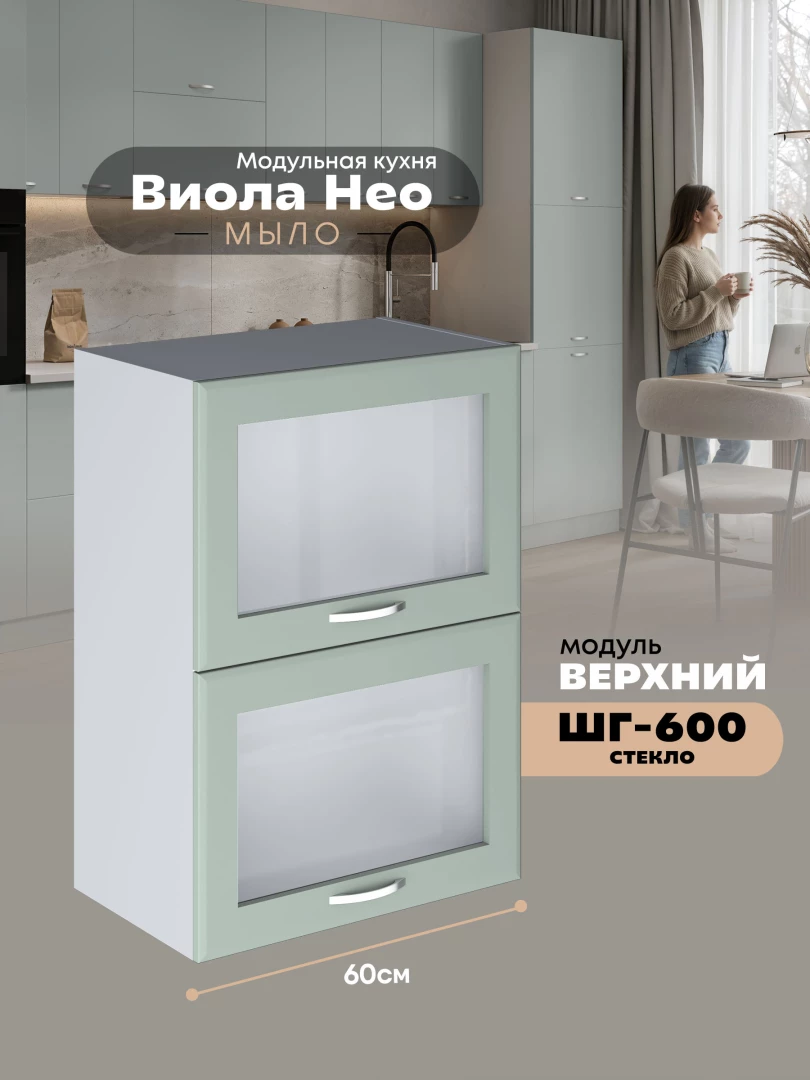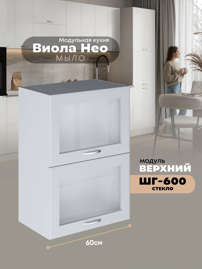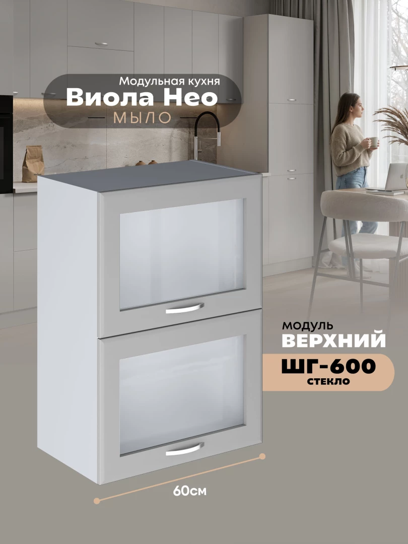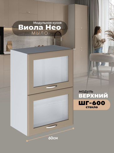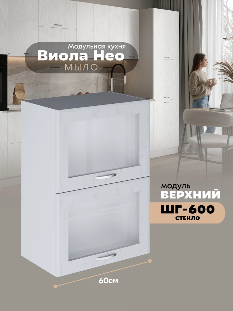 Кухонный модуль навесной с откидными створками Виола Нео Мыло ШГ-600-стекло Матовый