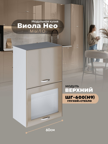Кухонный модуль навесной с откидными створками Виола Нео Мыло ШГ-600(Н9) (глухой/стекло) Глянцевый