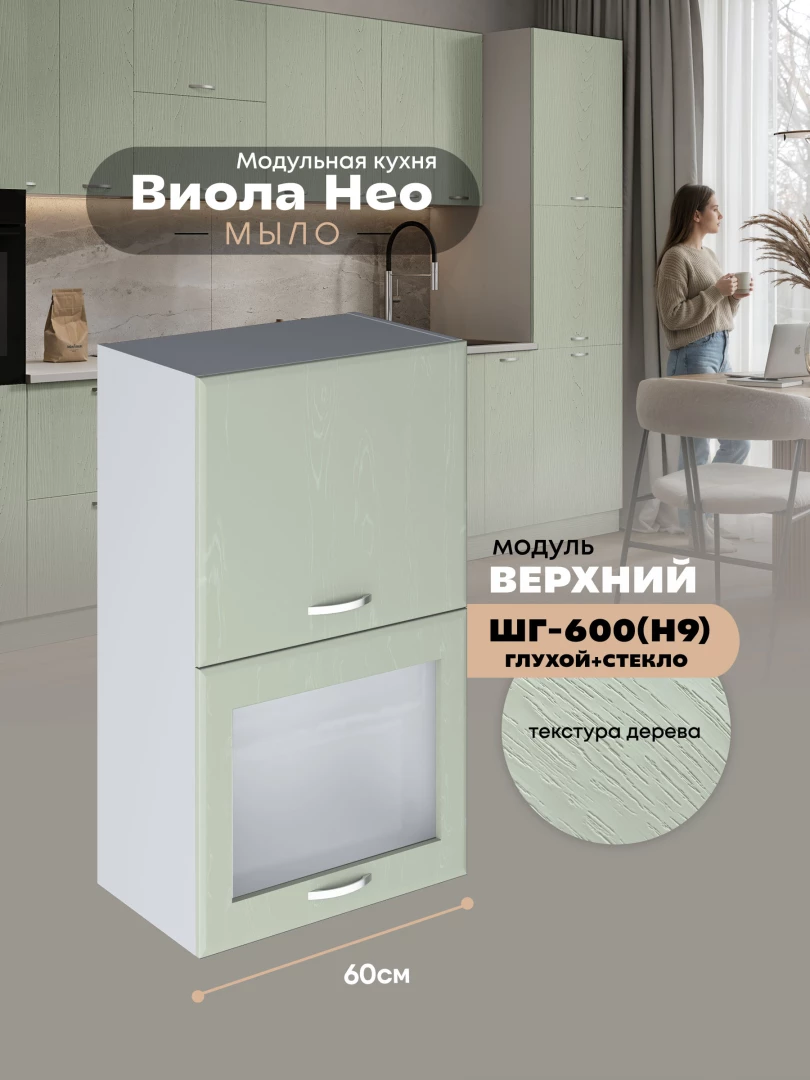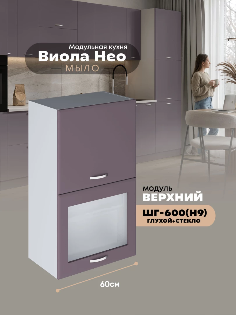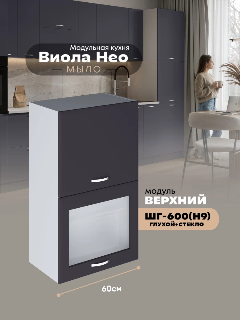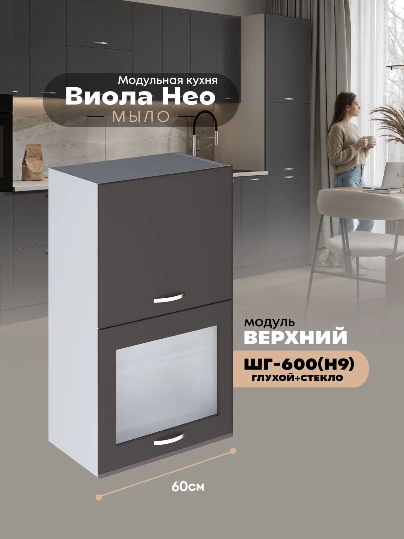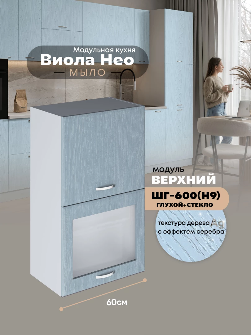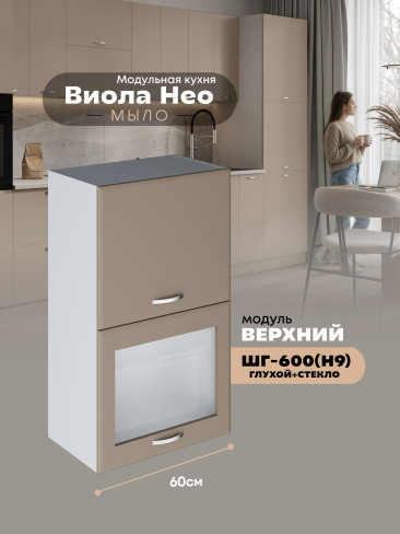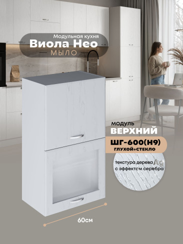 Кухонный модуль навесной с откидными створками Виола Нео Мыло ШГ-600(Н9) (глухой/стекло) Матовый