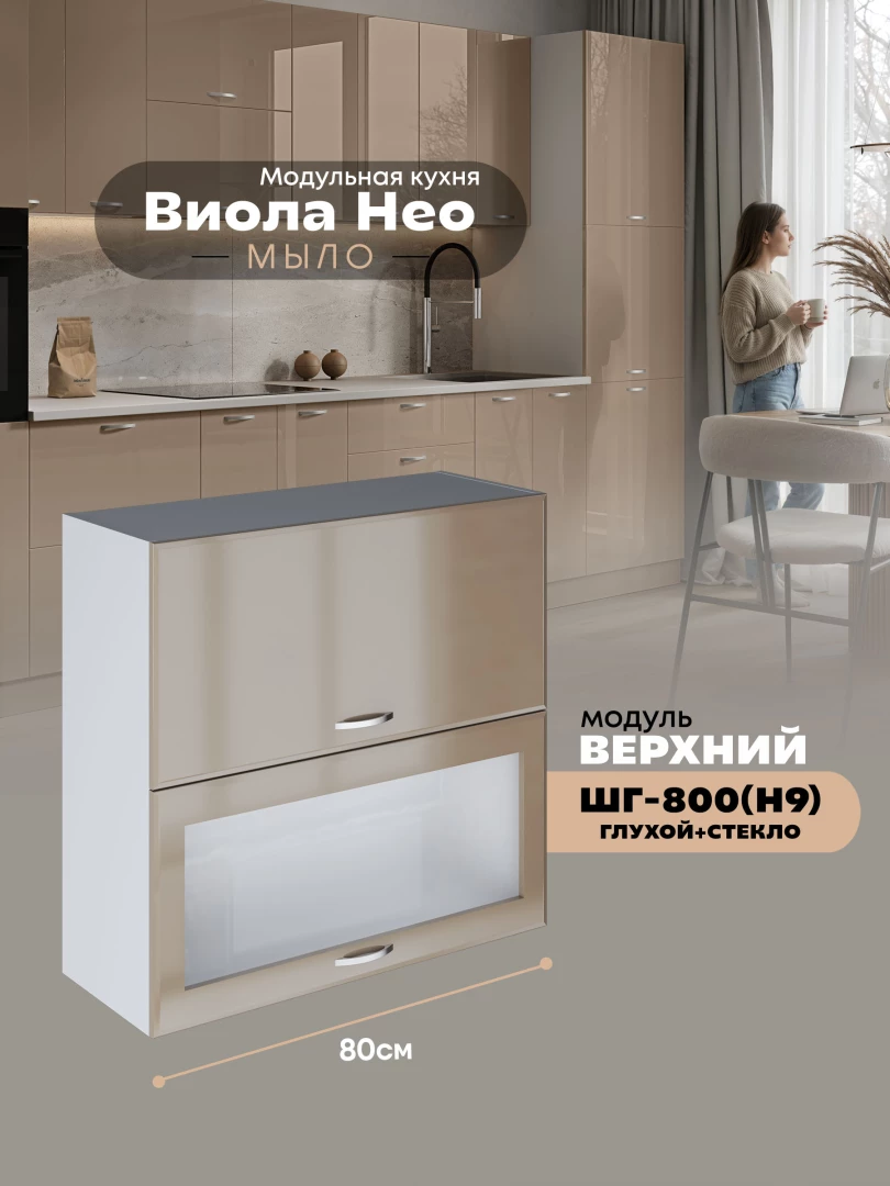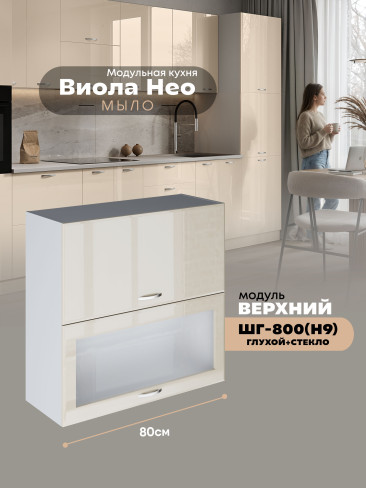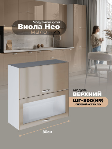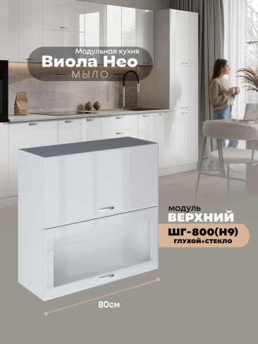 Кухонный модуль навесной с откидными створками Виола Нео Мыло ШГ-800(Н9) (глухой/стекло) Глянцевый