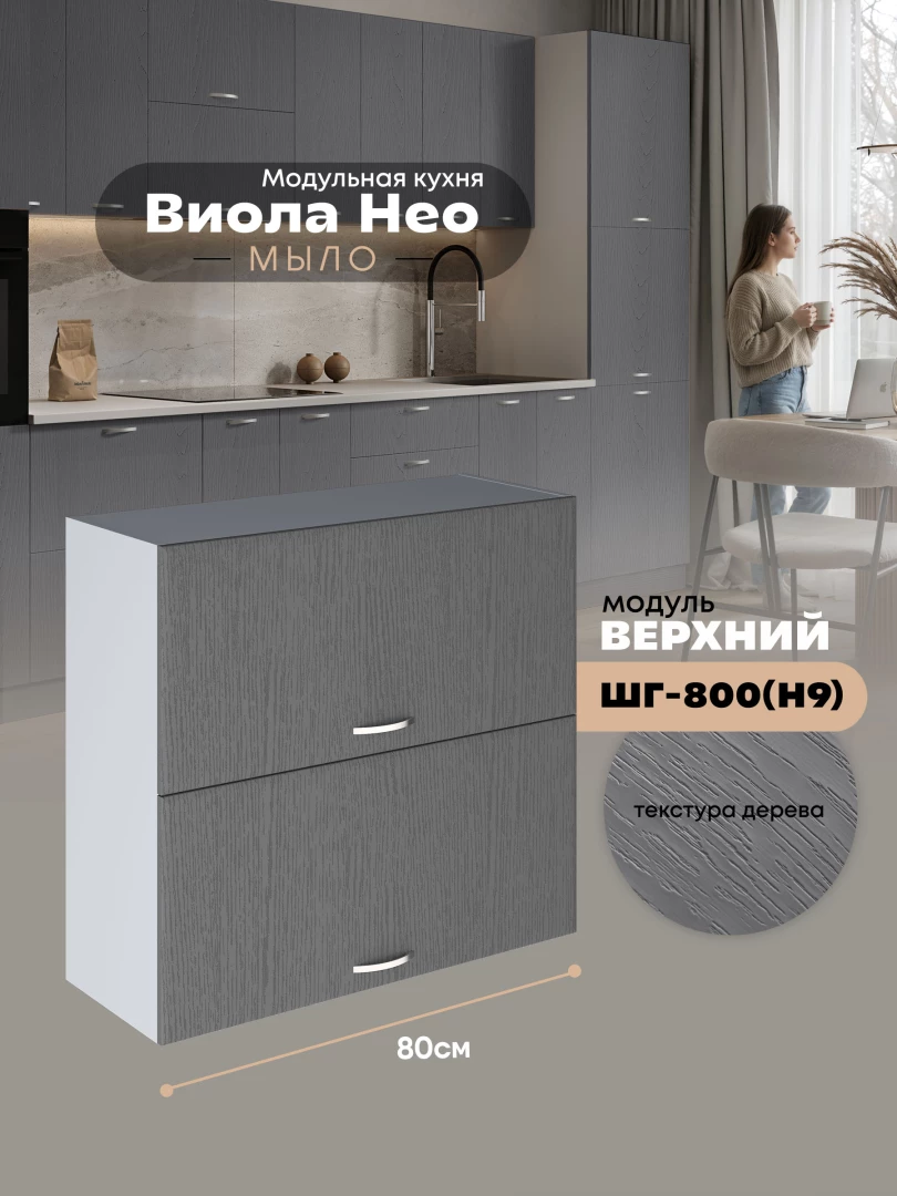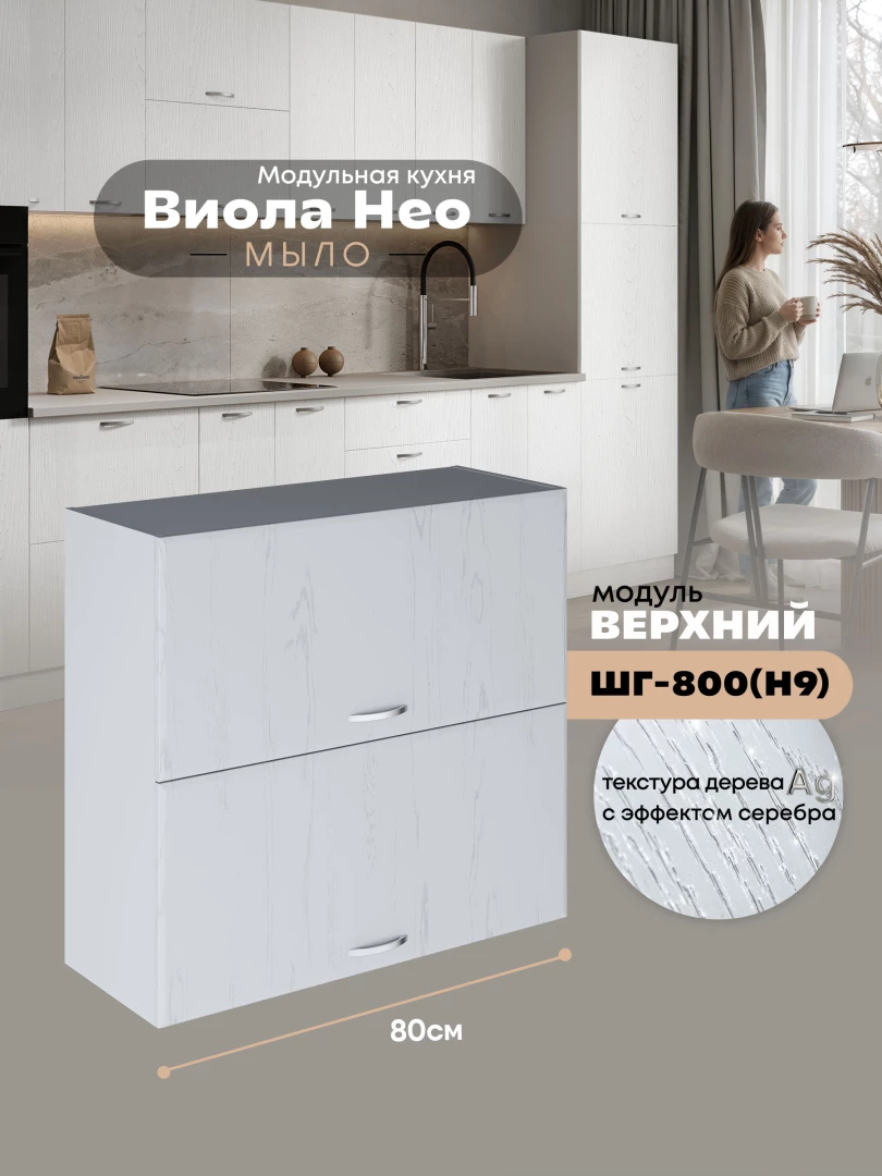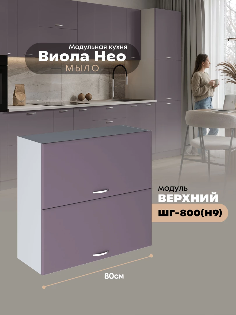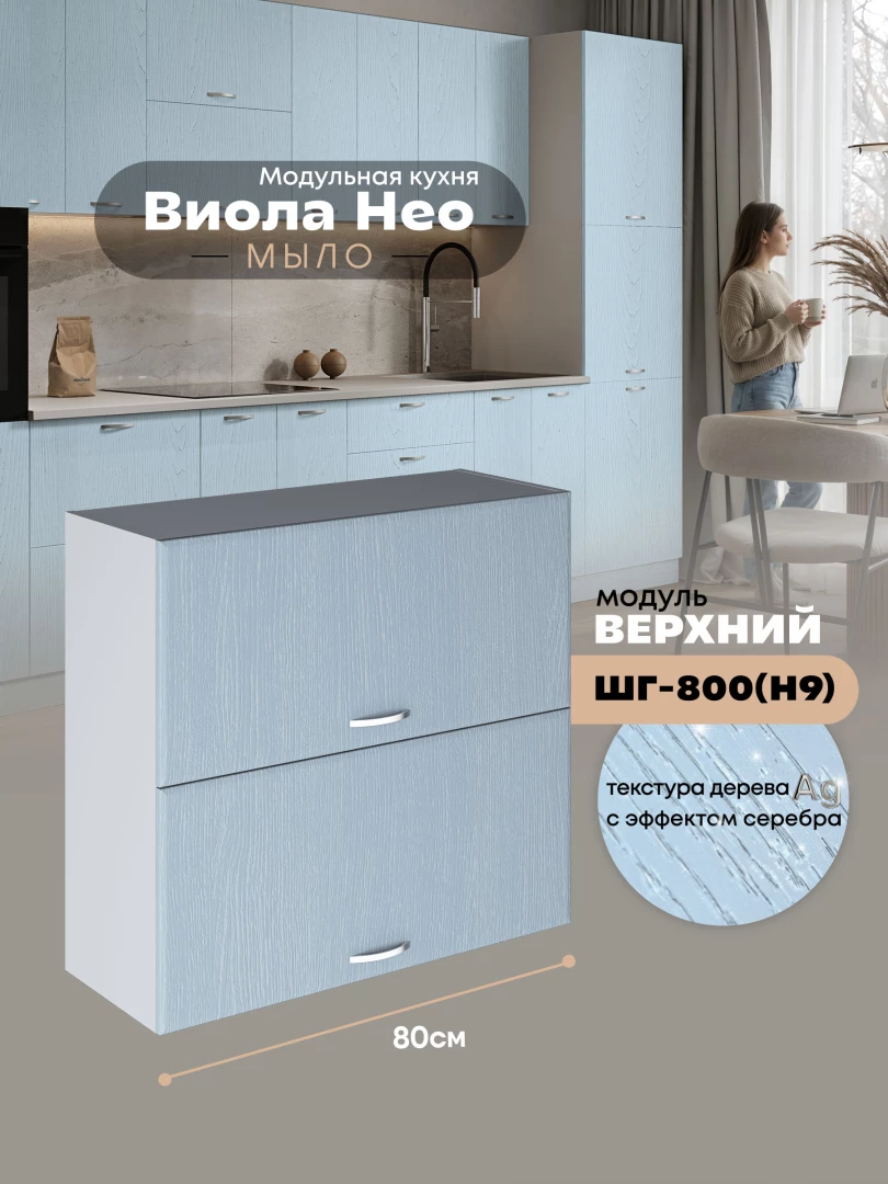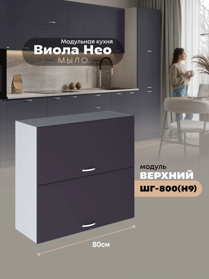 Кухонный модуль навесной с откидными створками Виола Нео Мыло ШГ-800(Н9) Матовый