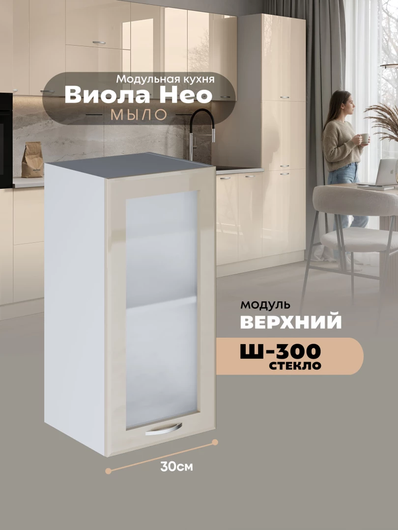 Кухонный модуль навесной Виола Нео Мыло Ш-300-стекло Глянцевый