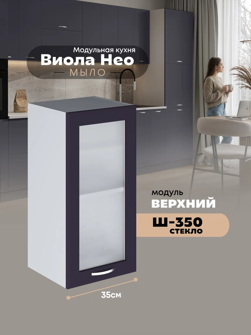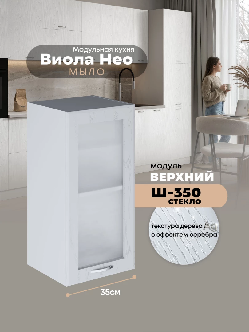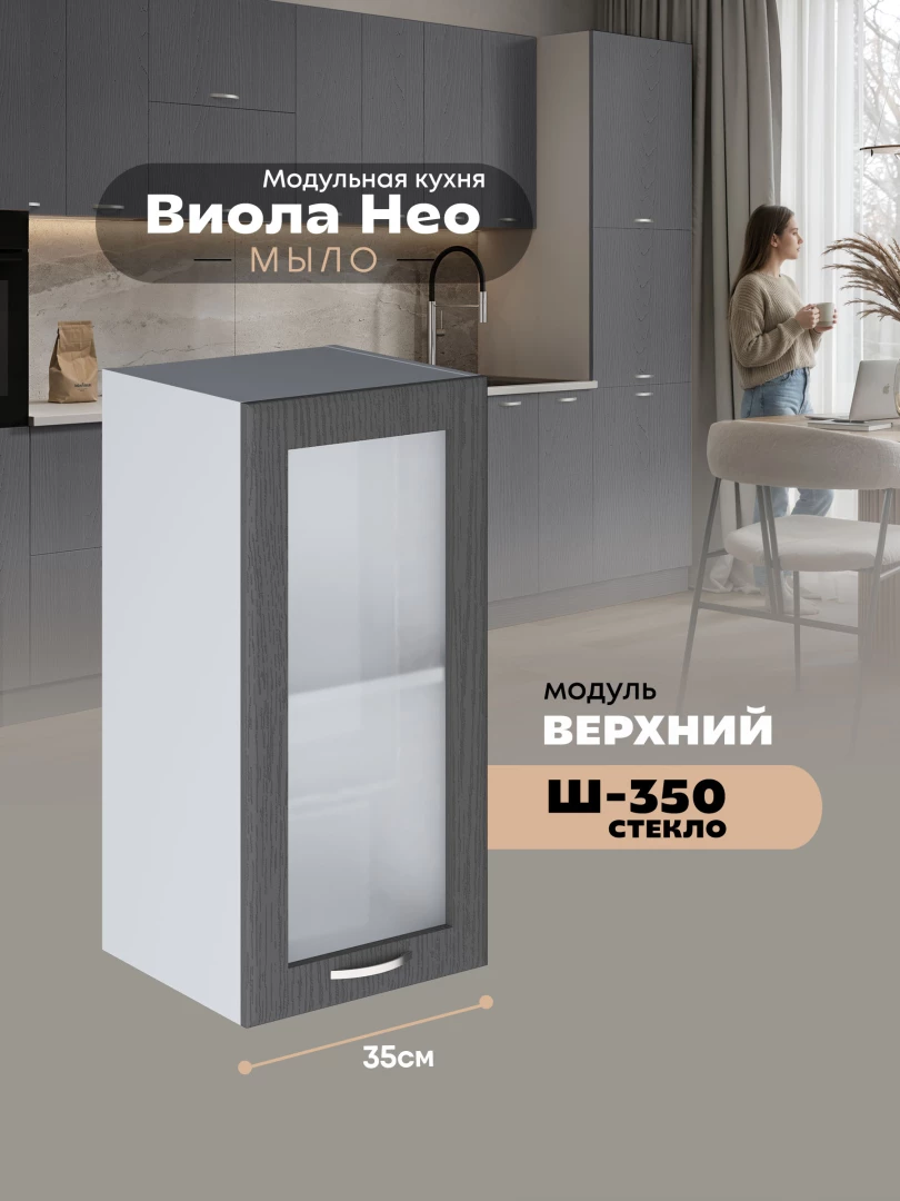 Кухонный модуль навесной Виола Нео Мыло Ш-350-стекло Матовый