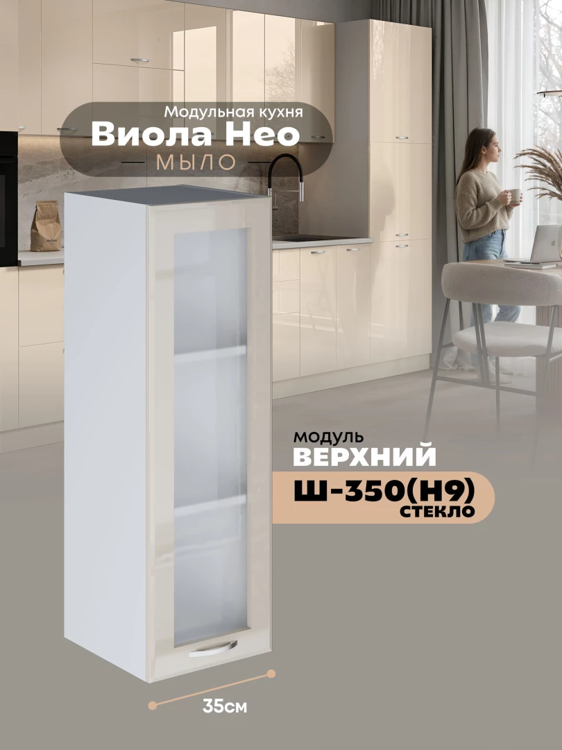 Кухонный модуль навесной Виола Нео Мыло Ш-350(Н9)-стекло Глянцевый