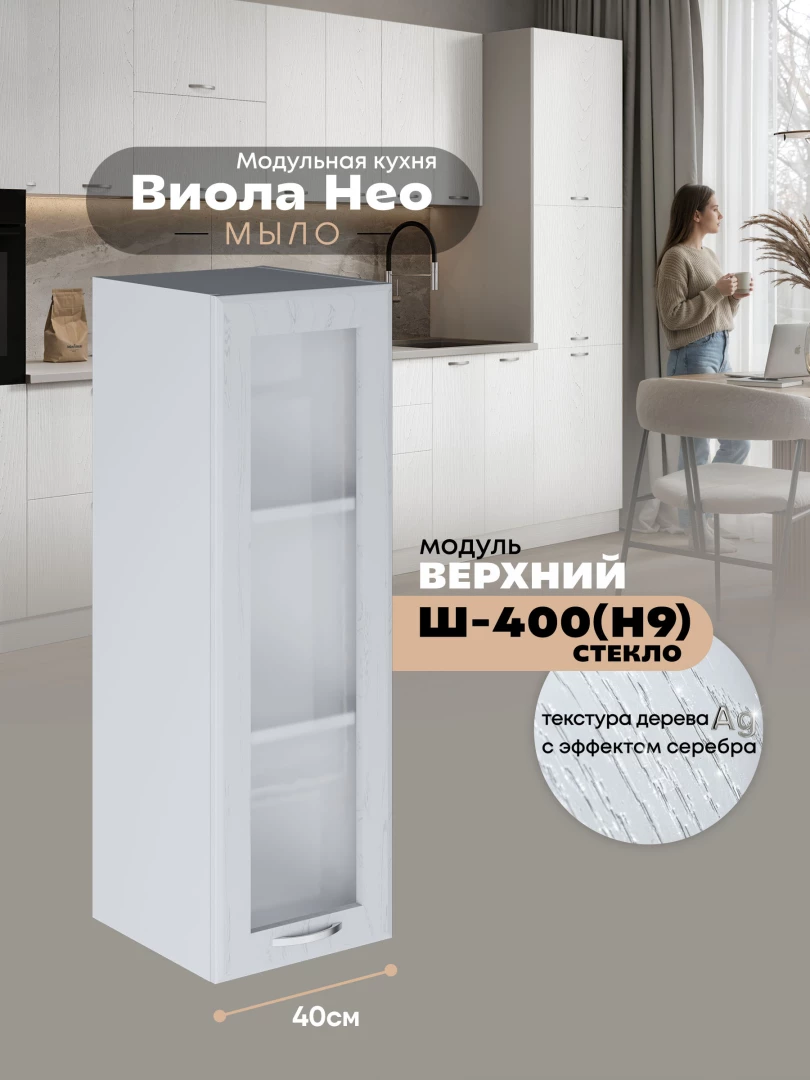 Кухонный модуль навесной Виола Нео Мыло Ш-400(Н9)-стекло Матовый