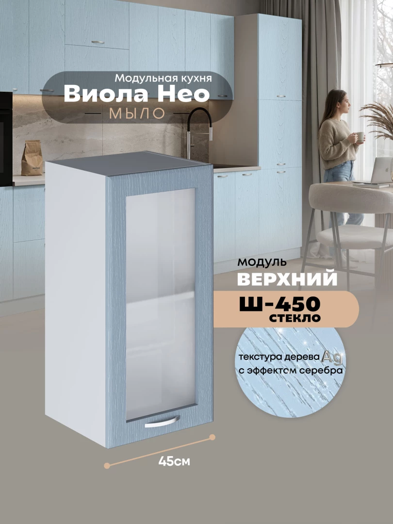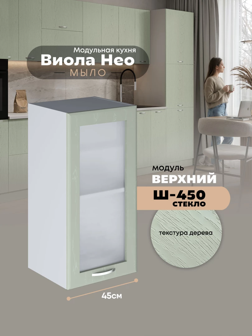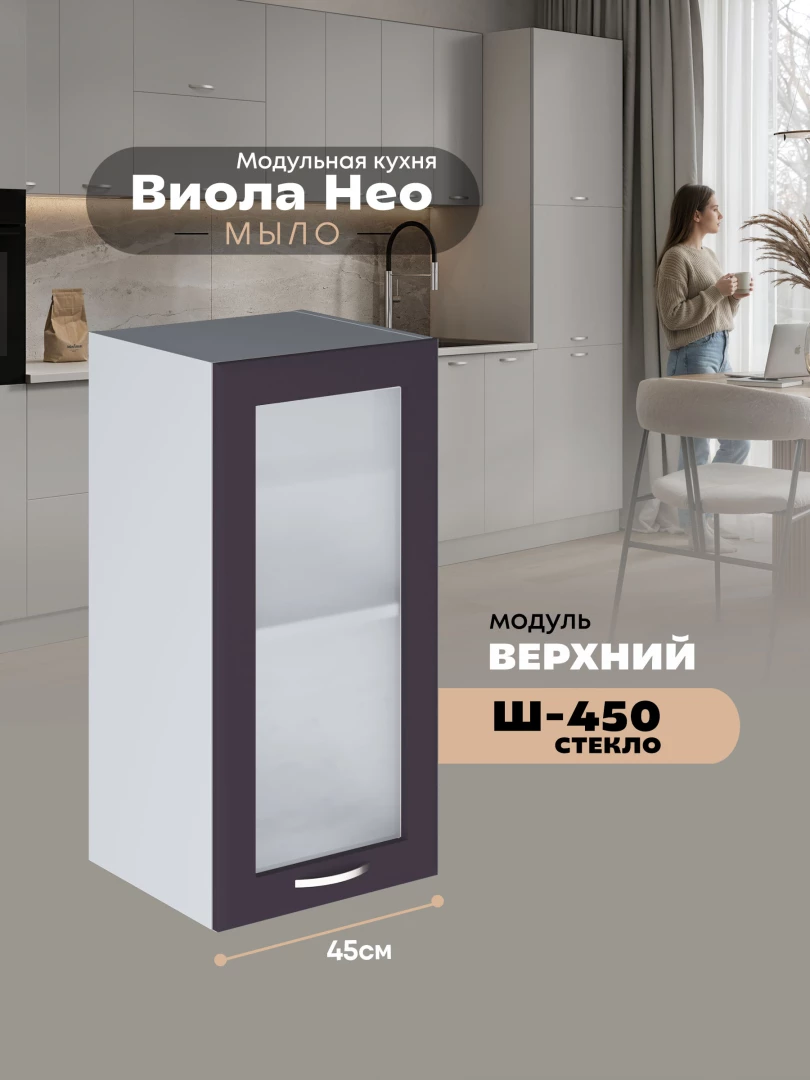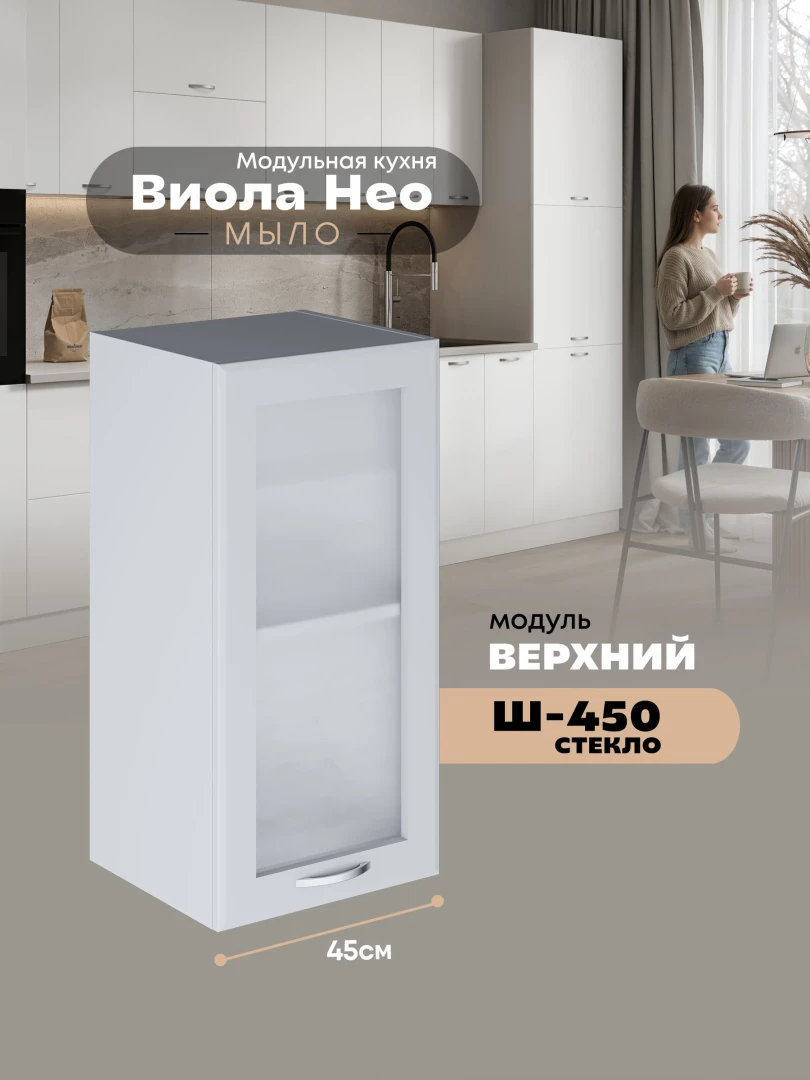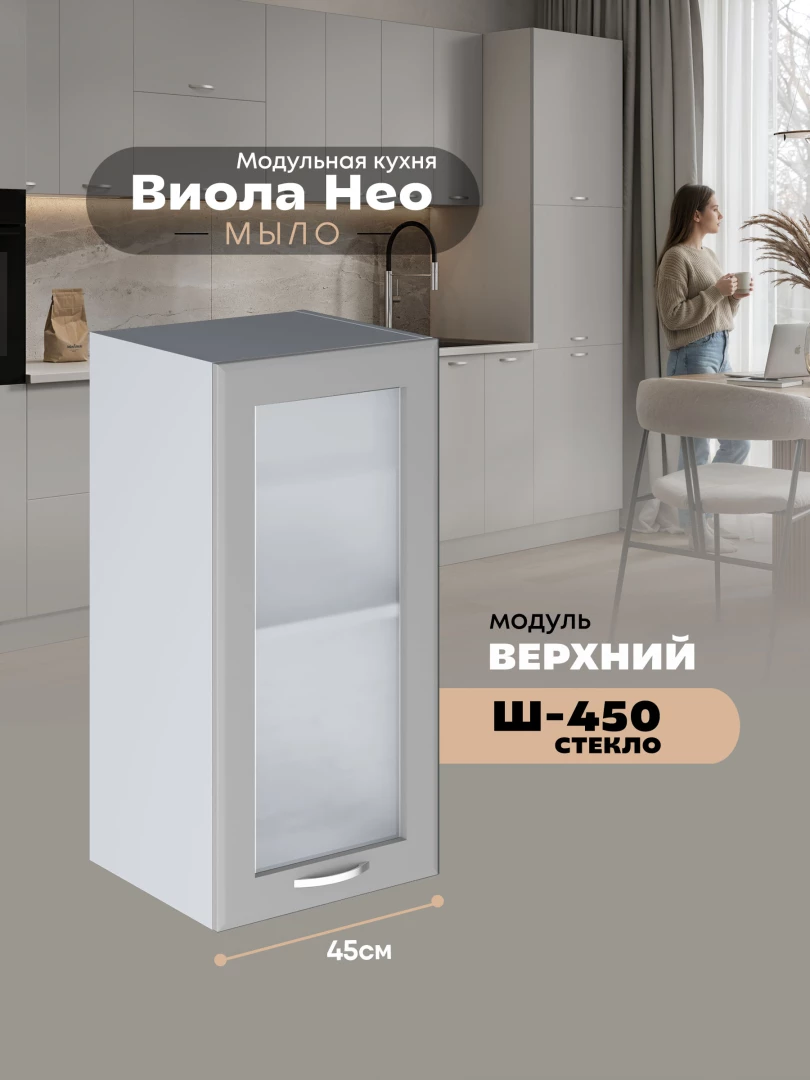 Кухонный модуль навесной Виола Нео Мыло Ш-450-стекло Матовый