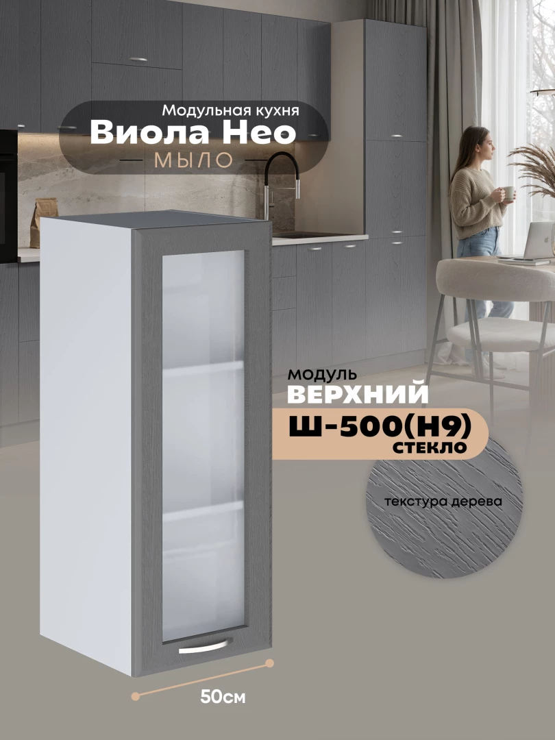 Кухонный модуль навесной Виола Нео Мыло Ш-500(Н9)-стекло Матовый