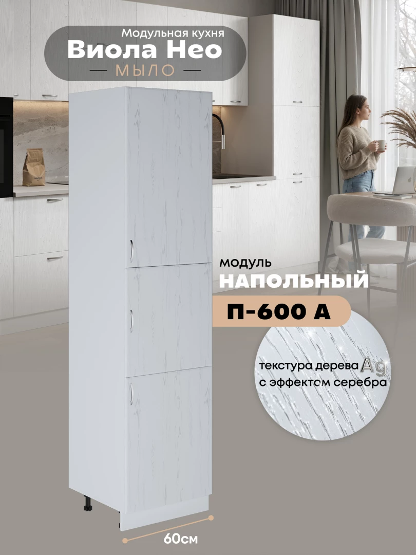 Шкаф-пенал для кухни Виола Нео Мыло П-600 А Матовый
