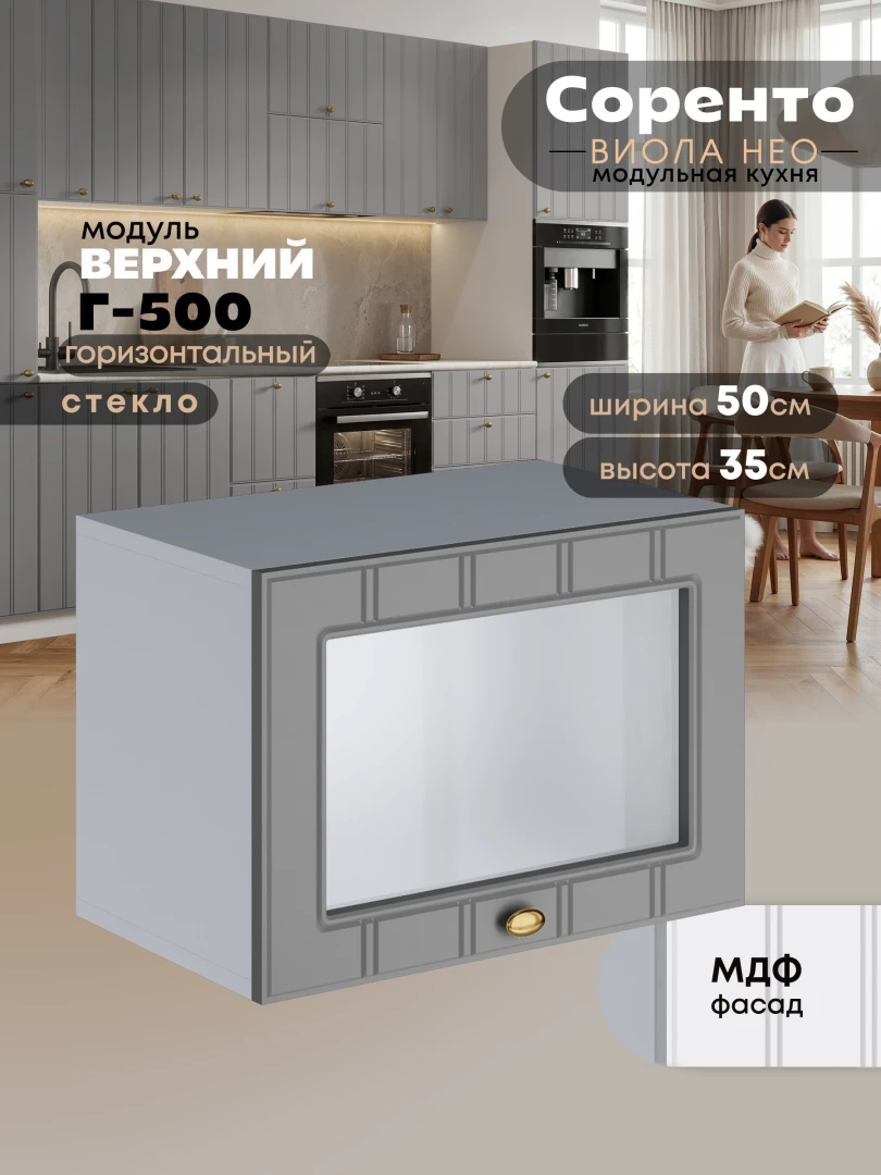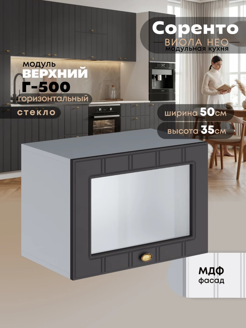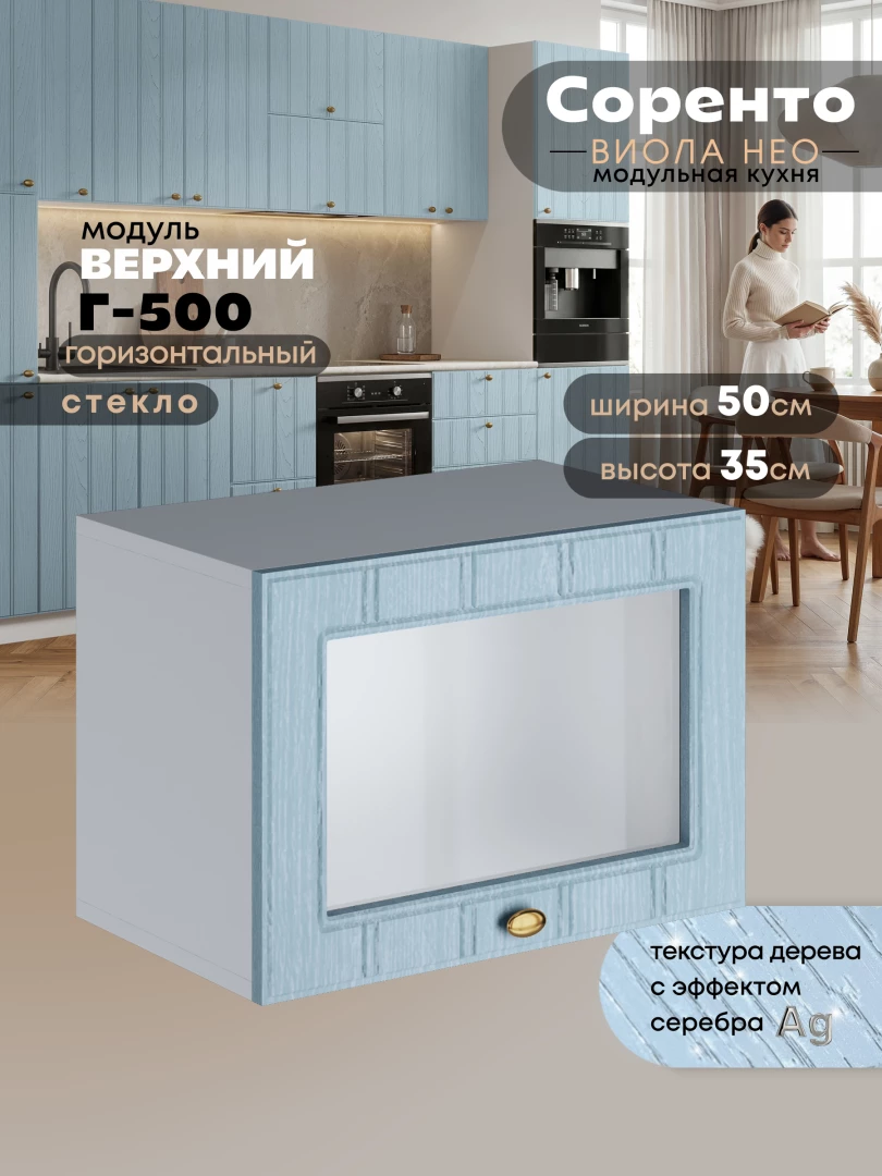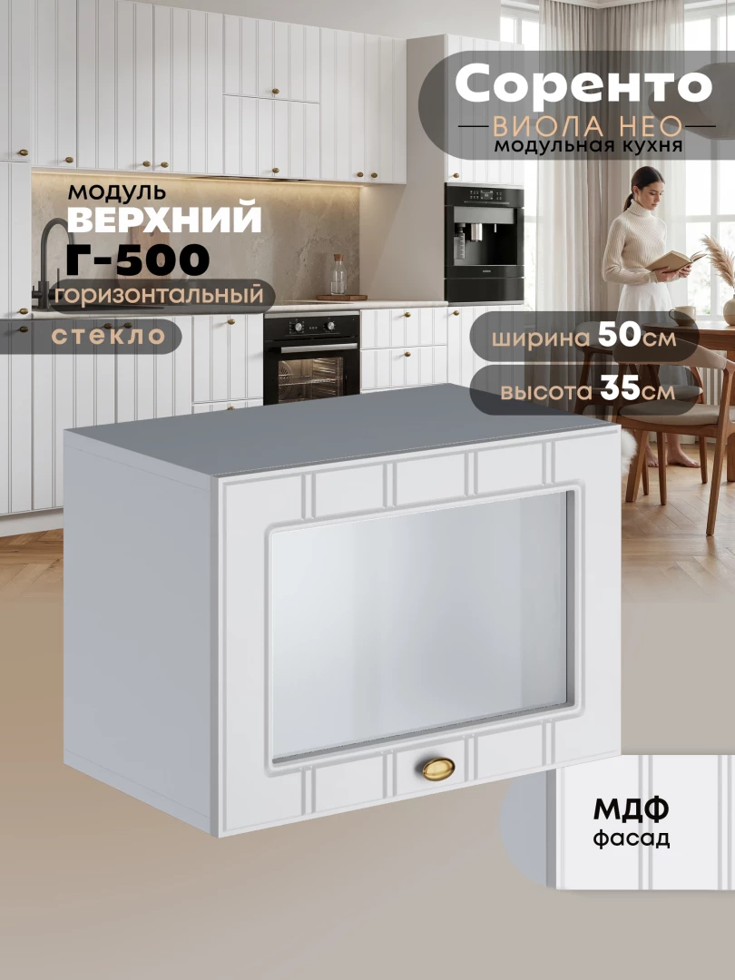 Кухонный модуль навесной горизонтальный (антресоль) Виола Нео Соренто Г-500-стекло Матовый