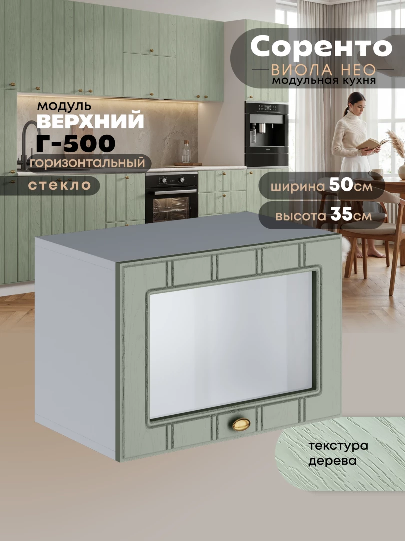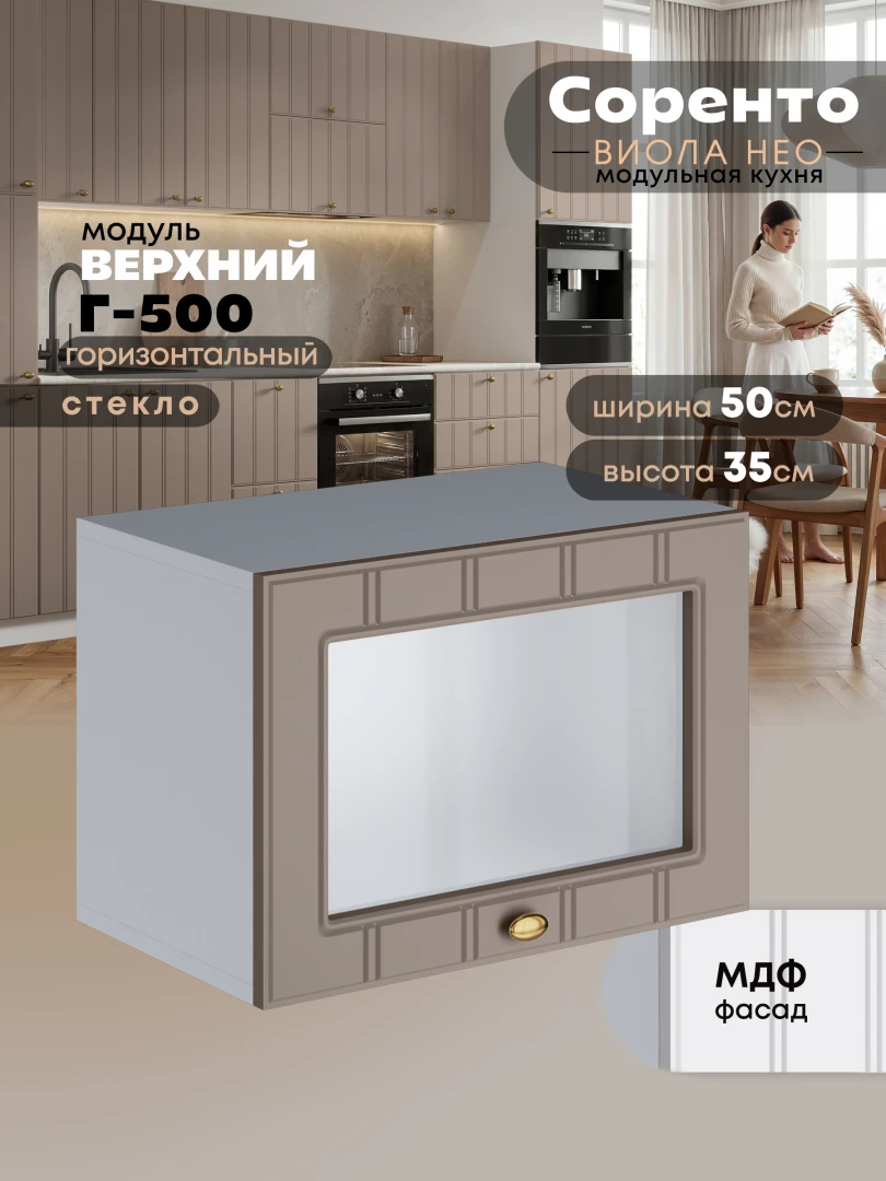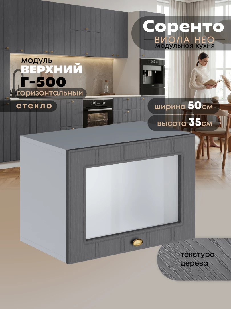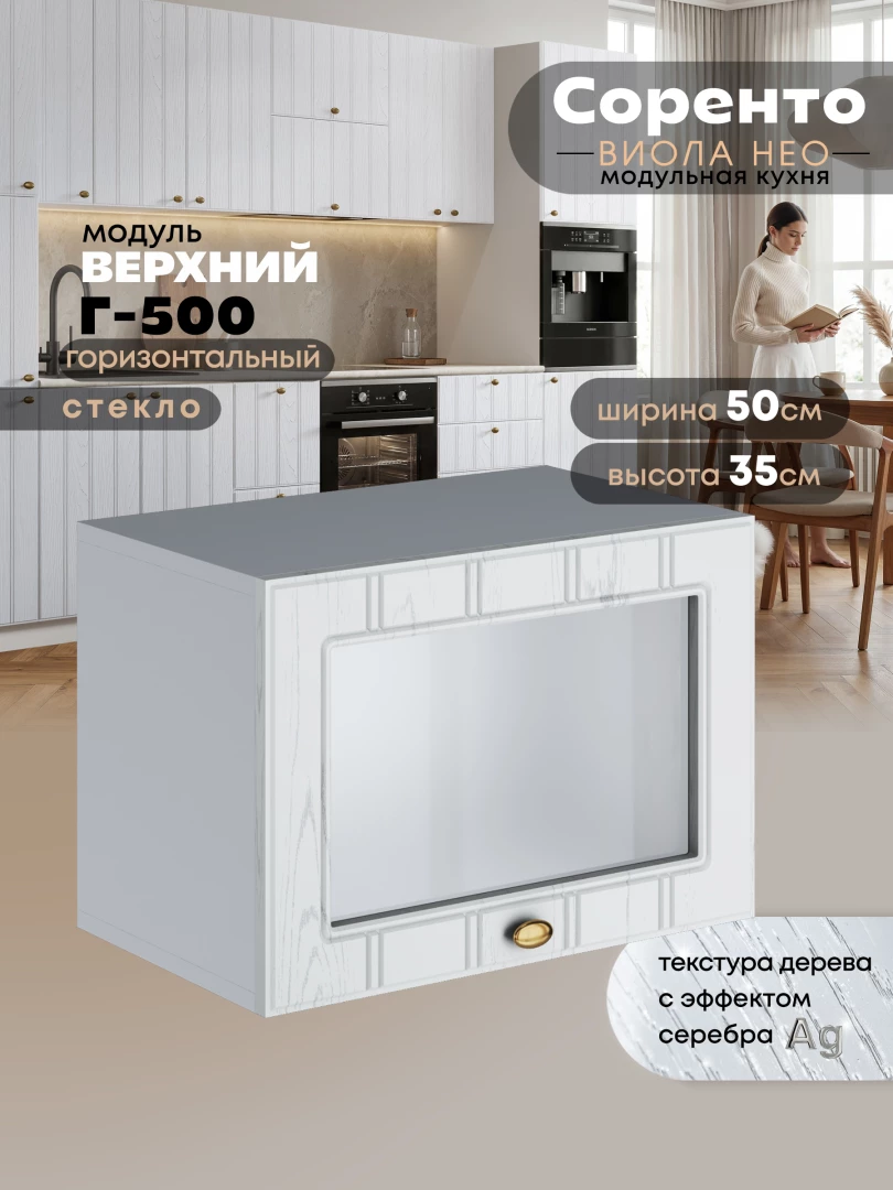 Кухонный модуль навесной горизонтальный (антресоль) Виола Нео Соренто Г-500-стекло Матовый