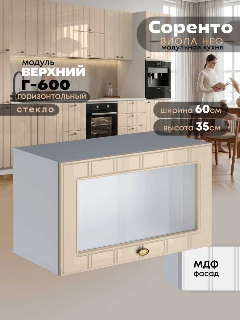 Кухонный модуль навесной горизонтальный (антресоль) Виола Нео Соренто Г-600-стекло Глянцевый