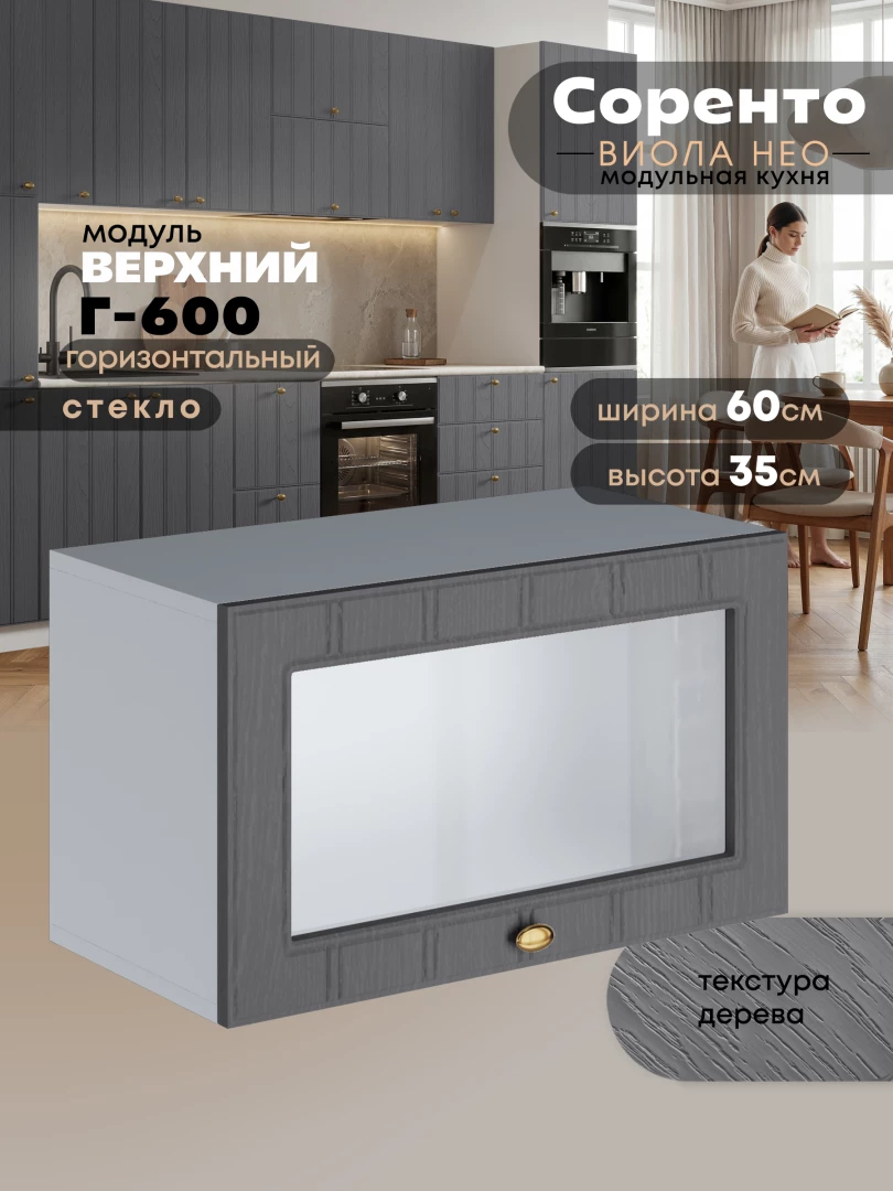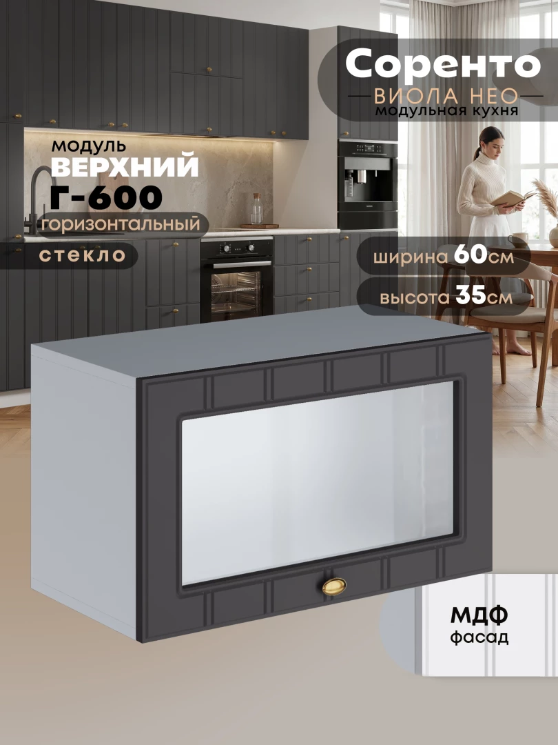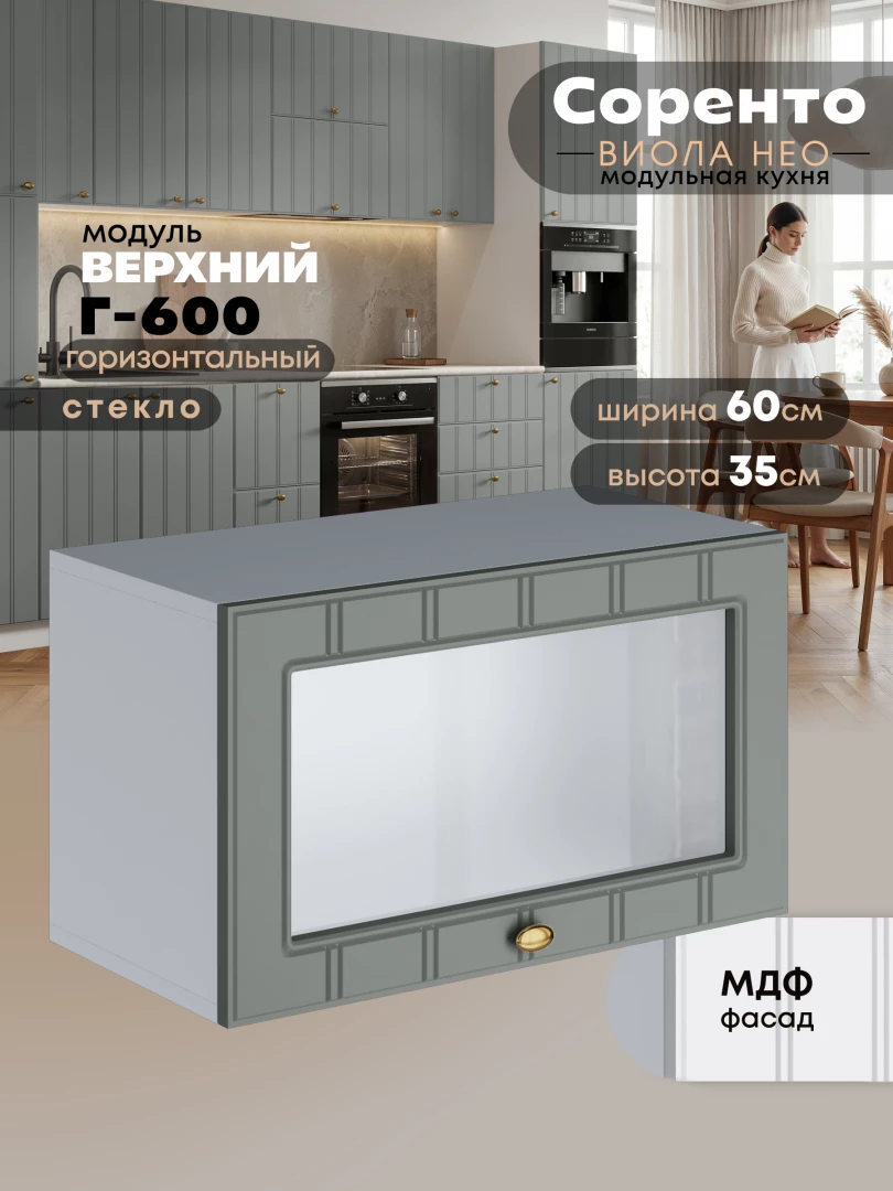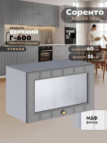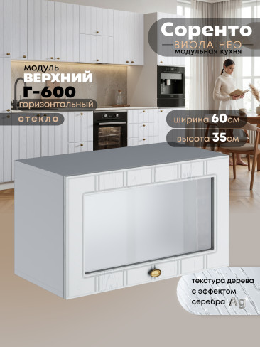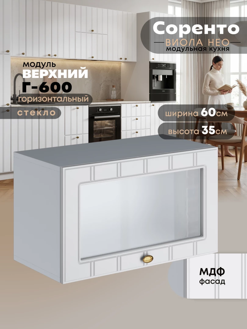 Кухонный модуль навесной горизонтальный (антресоль) Виола Нео Соренто Г-600-стекло Матовый