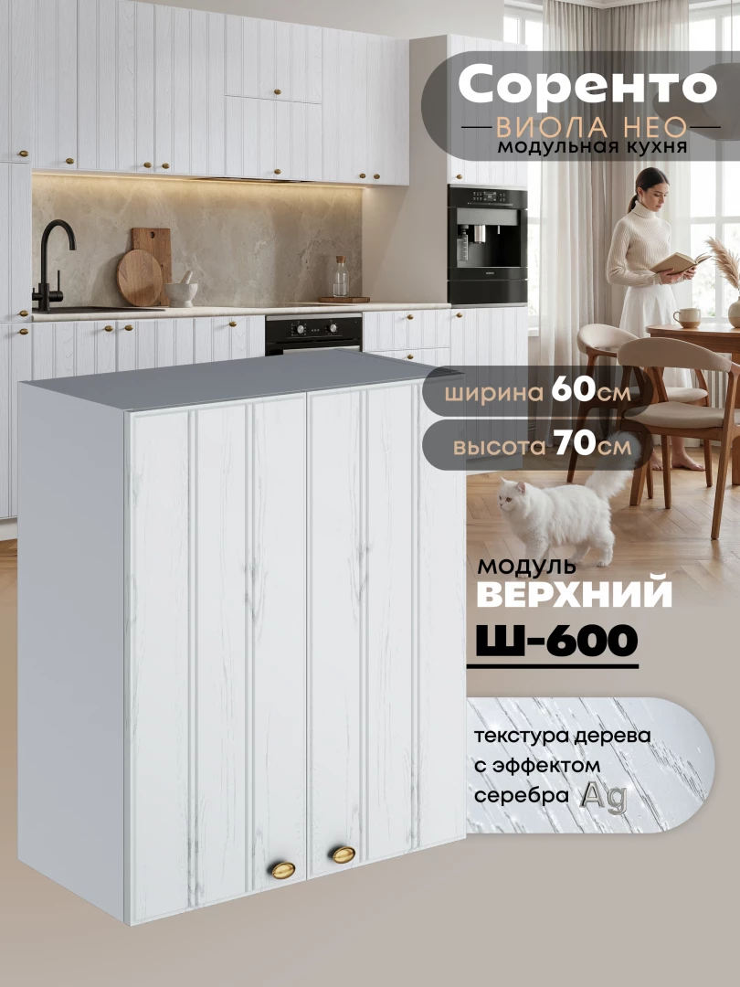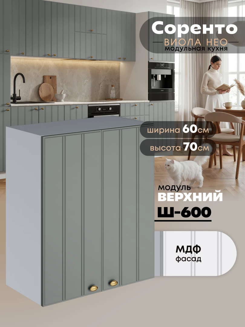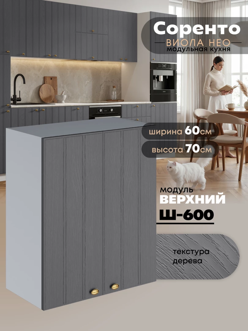 Кухонный модуль навесной с двумя створками Виола Нео Соренто Ш-600 Матовый