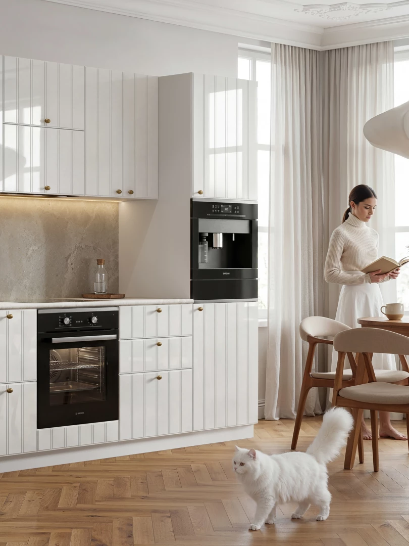 Преимуществом модульной кухни «Виола Нео Соренто» является широкая модульная линейка с большим выбором модулей. Две высоты навесных шкафов гарантирует удобство использования и помогает оптимально разместить все необходимое. Дизайн фасадов с вертикальными полосками меняет восприятие пространства – визуально раздвигает, добавляет воздушности. Фасады, выполненные из МДФ, придают мебели дорогой презентабельный вид. В процессе эксплуатации не оказывает отрицательного действия на здоровье человека.