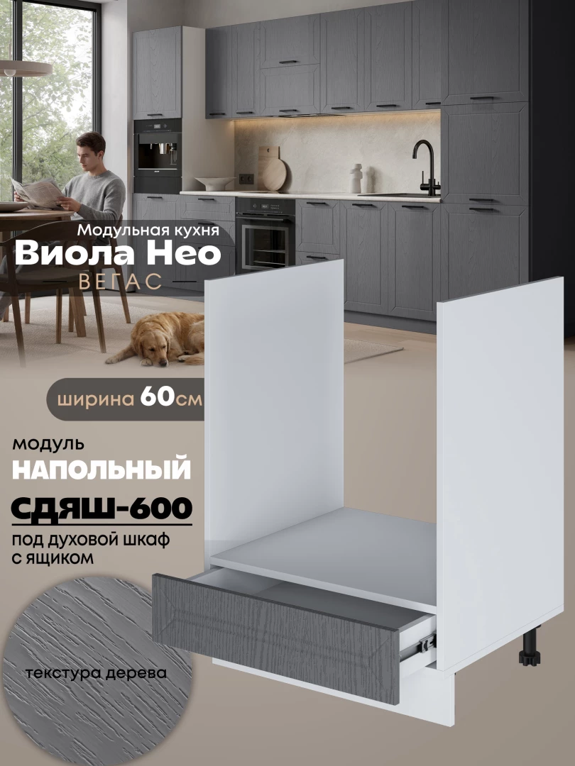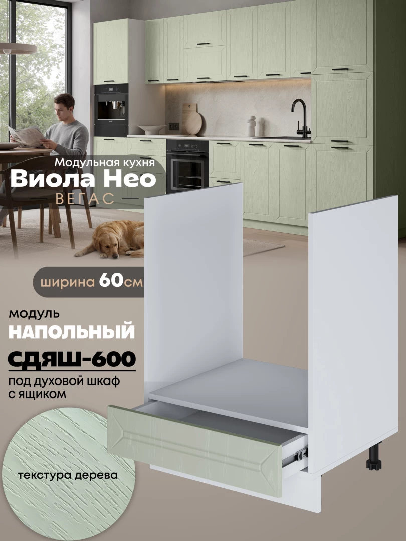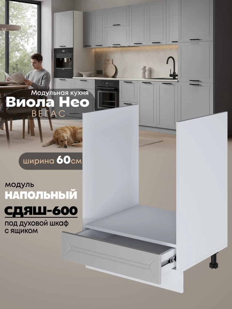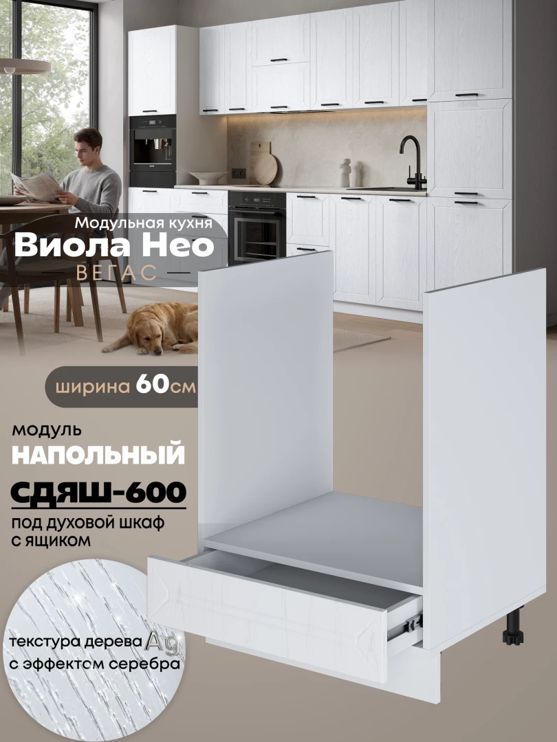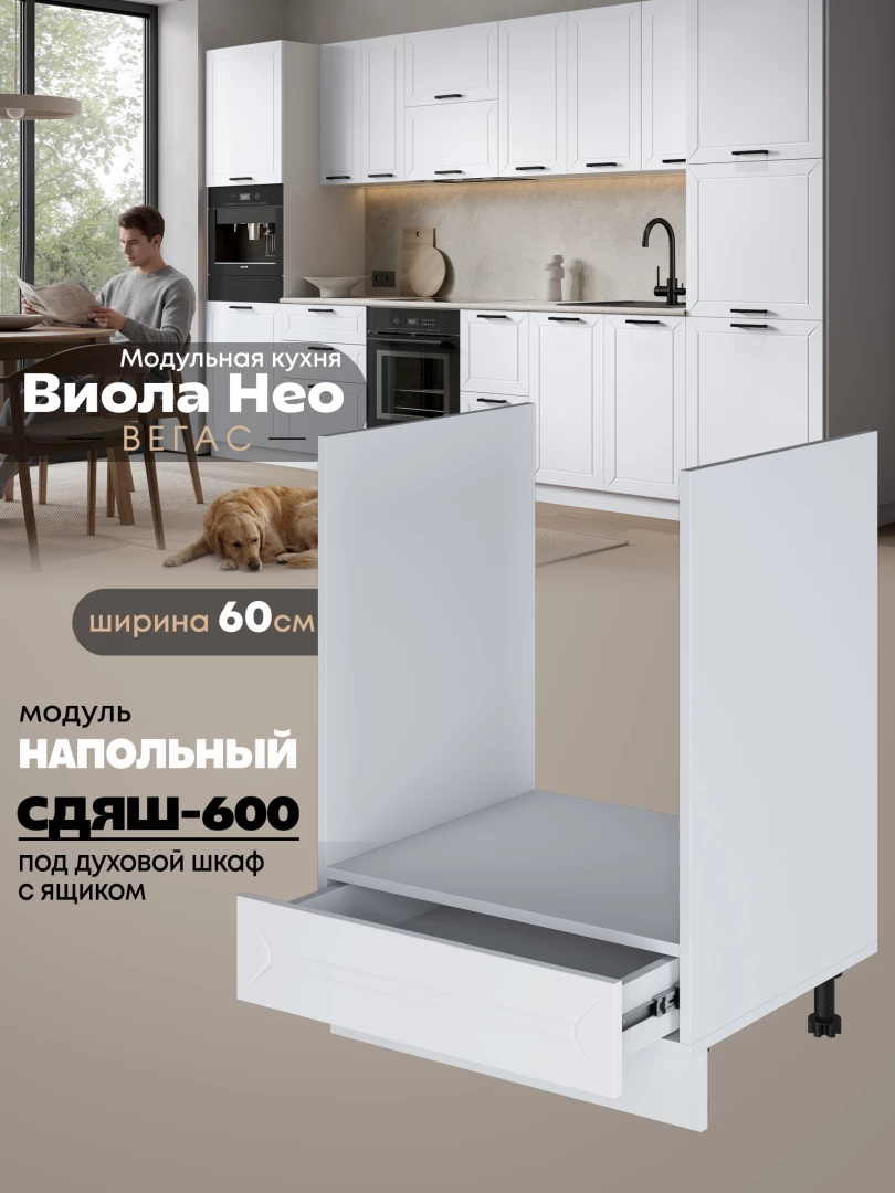 Кухонный модуль напольный под духовой шкаф (с выдвижным ящиком) Виола Нео Вегас СДЯШ-600 Матовый