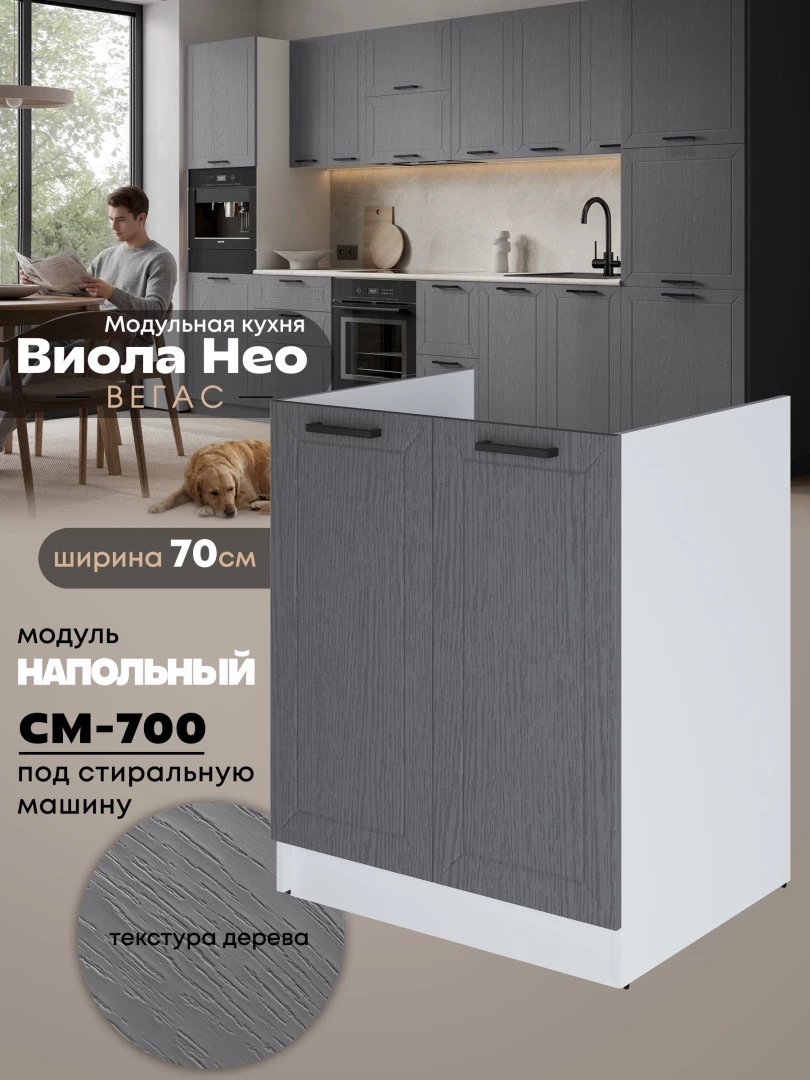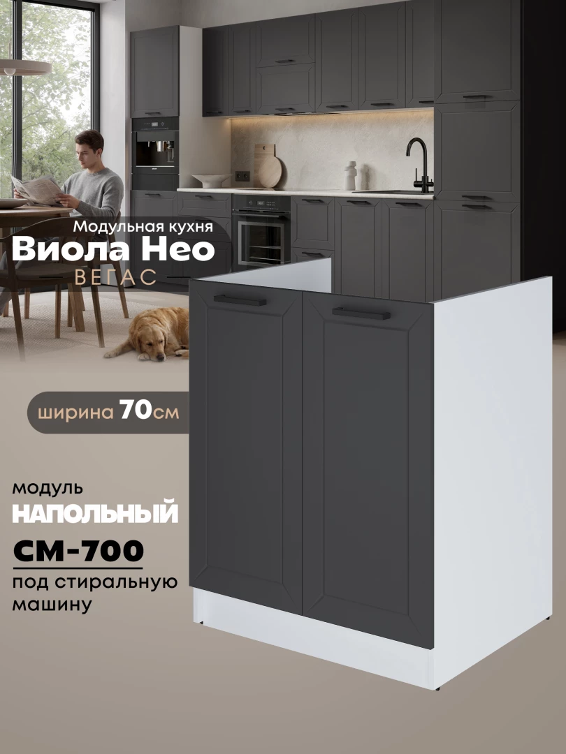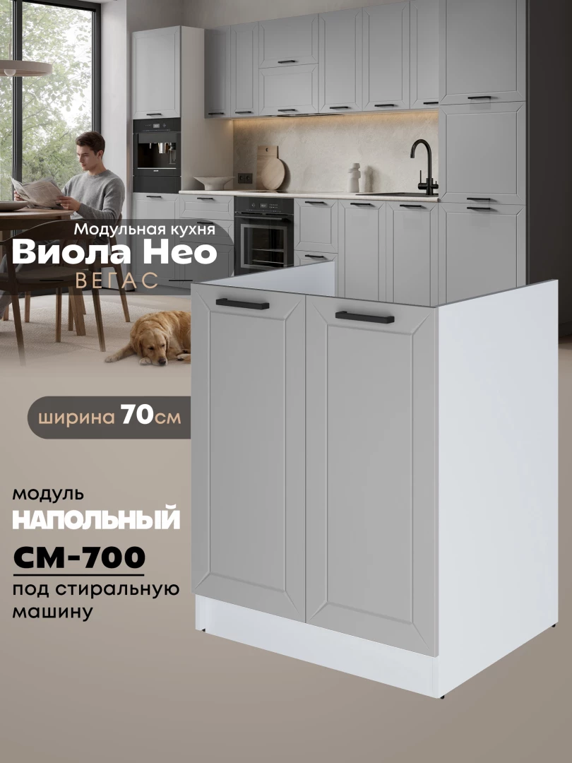 Кухонный модуль напольный под стиральную машину (с двумя створками) Виола Нео Вегас СМ-700 Матовый