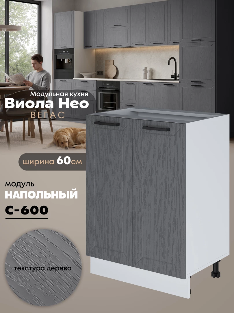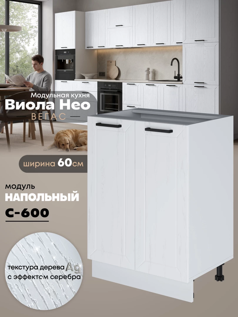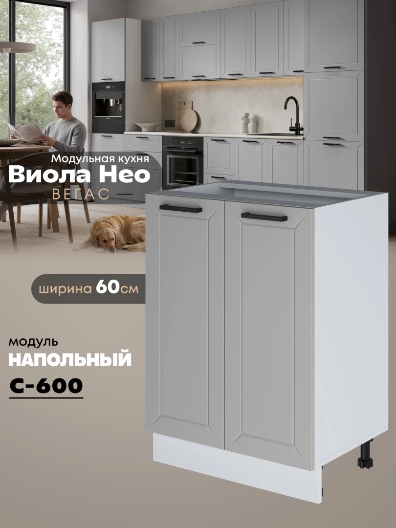 Кухонный модуль напольный с двумя створками Виола Нео Вегас С-600 Матовый