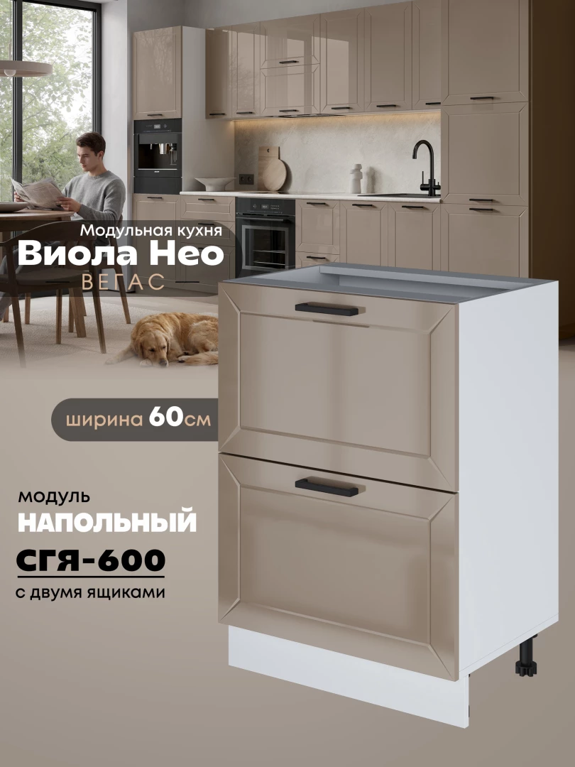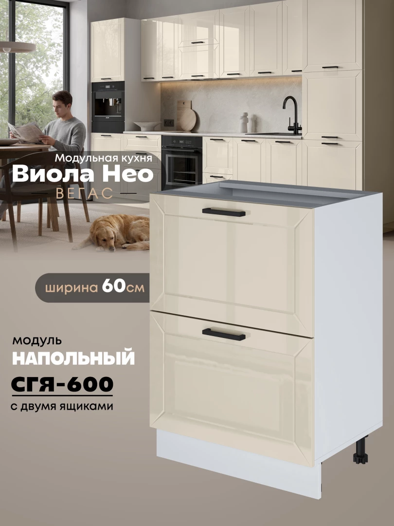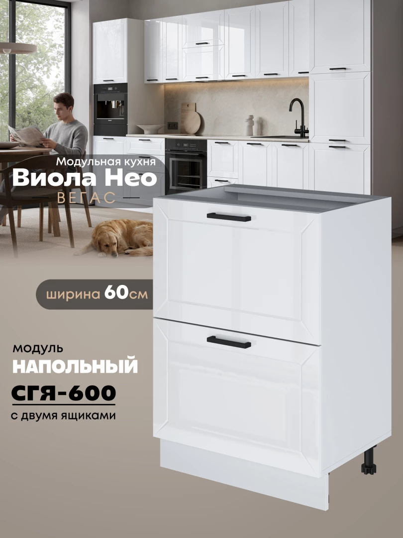Кухонный модуль напольный с двумя выдвижными ящиками Виола Нео Вегас СГЯ-600 Глянцевый