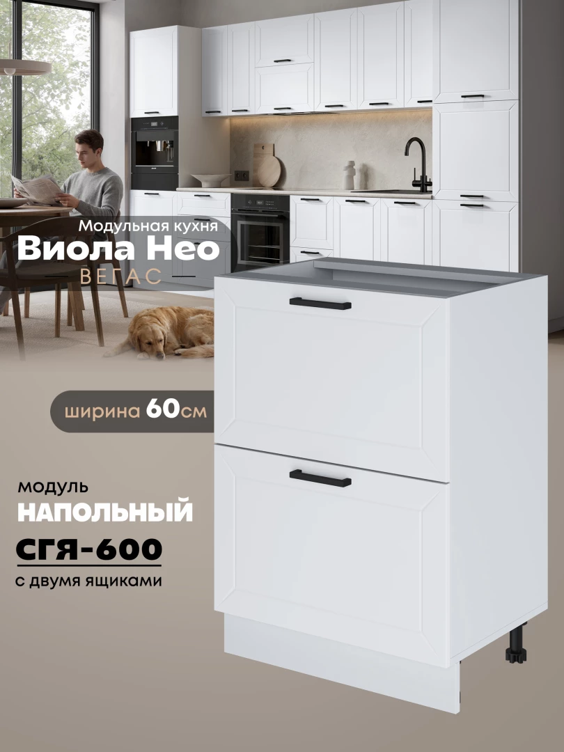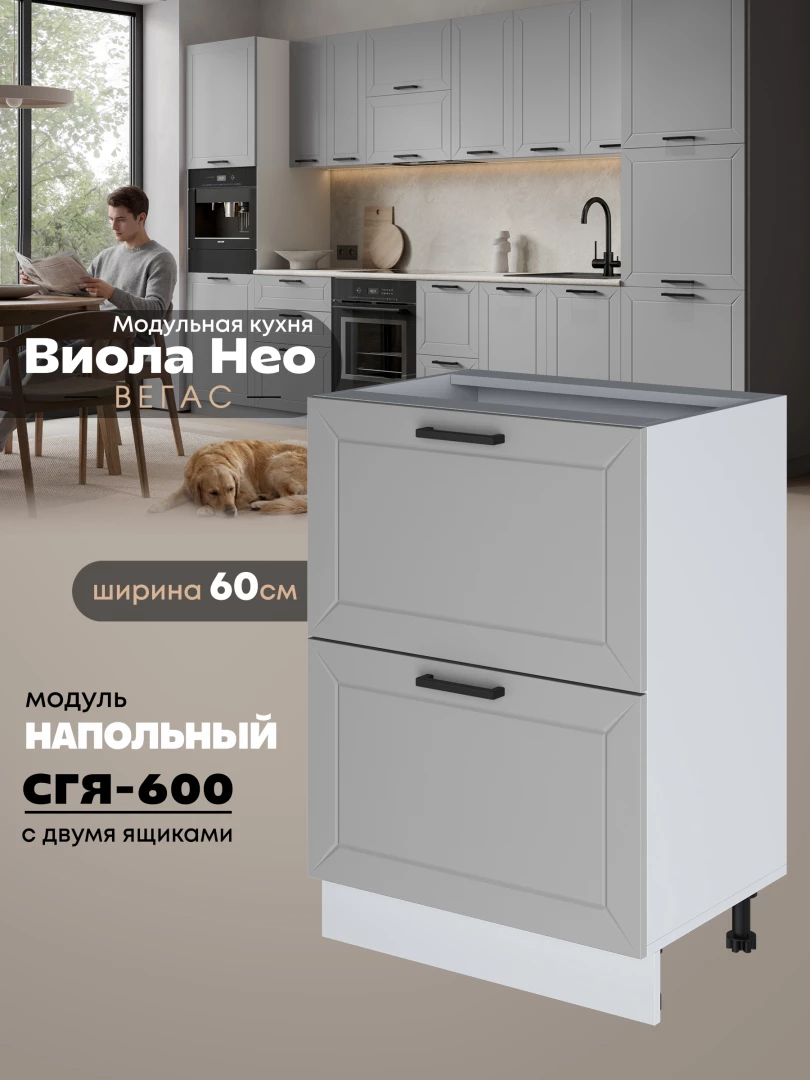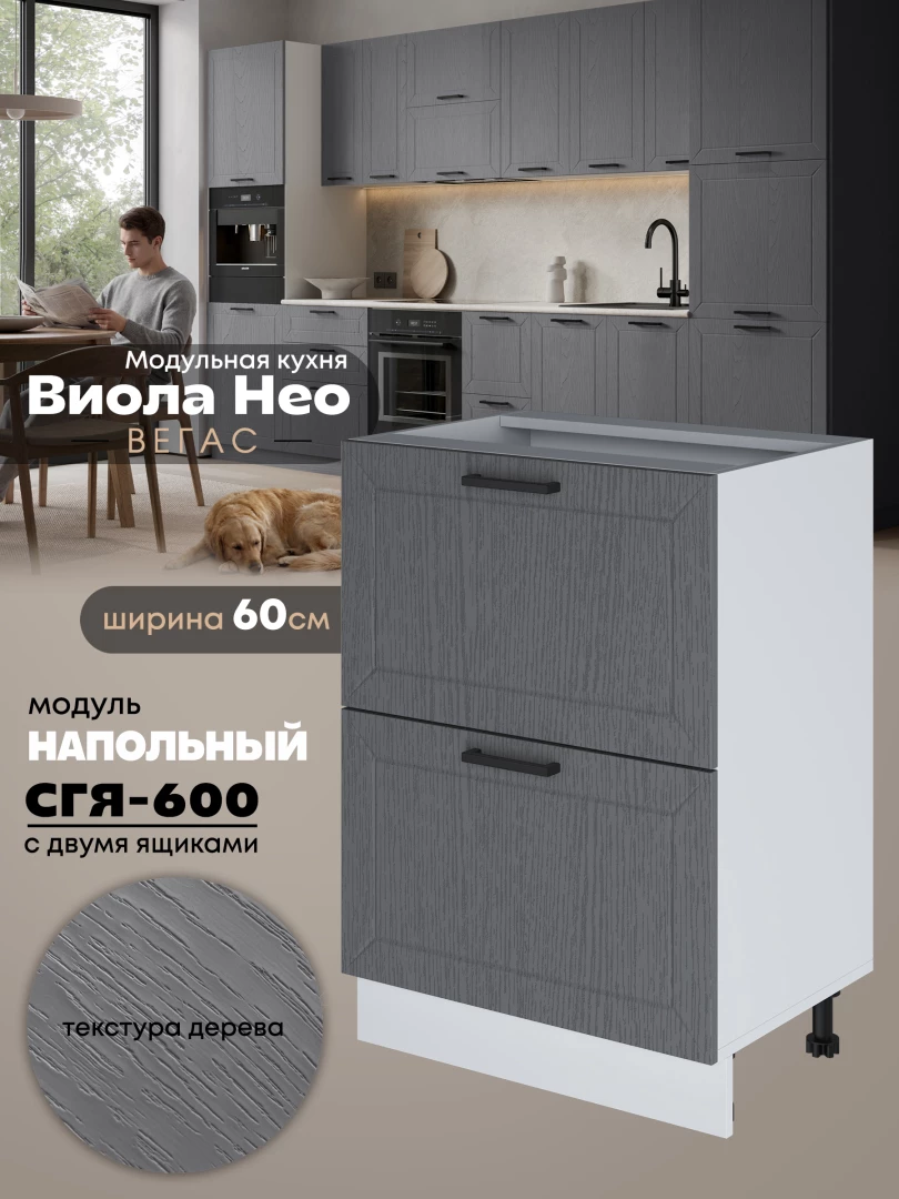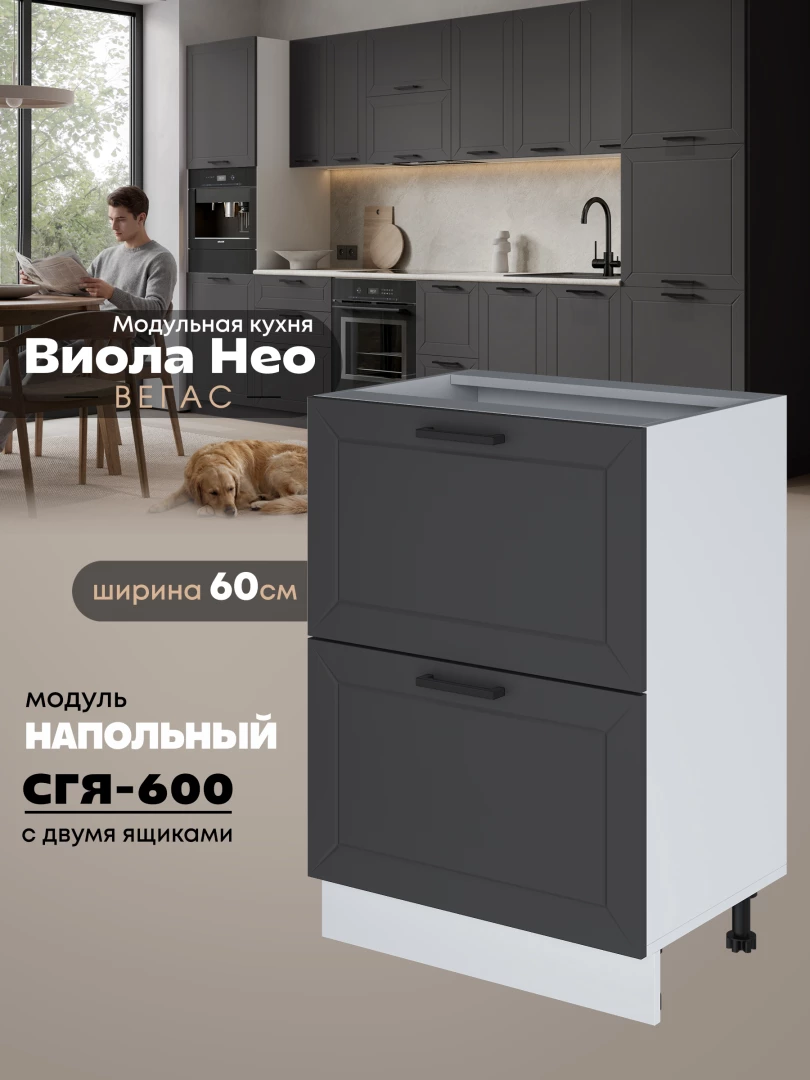 Кухонный модуль напольный с двумя выдвижными ящиками Виола Нео Вегас СГЯ-600 Матовый