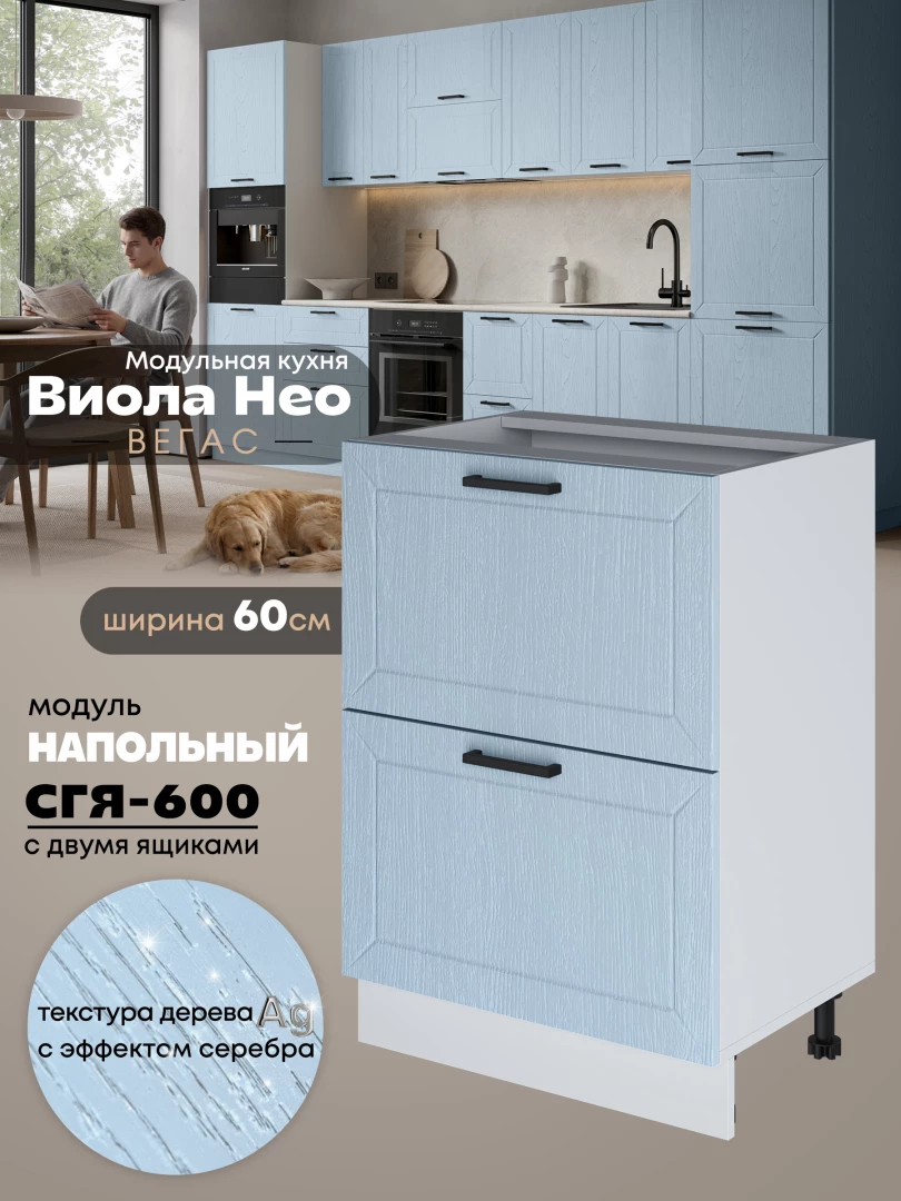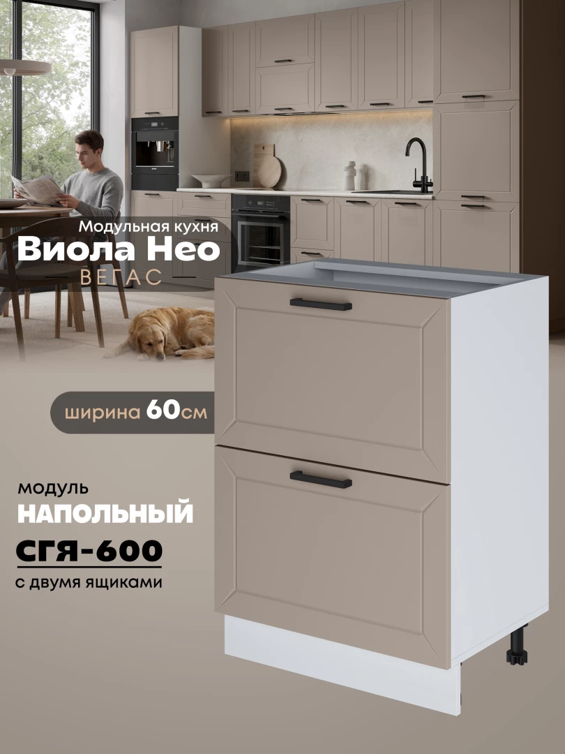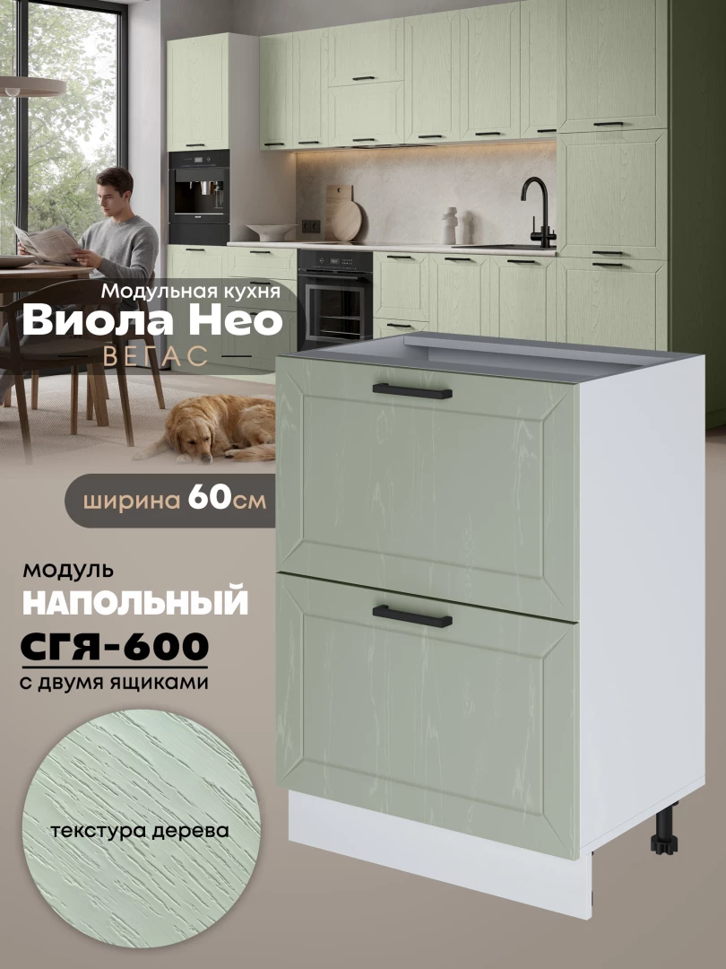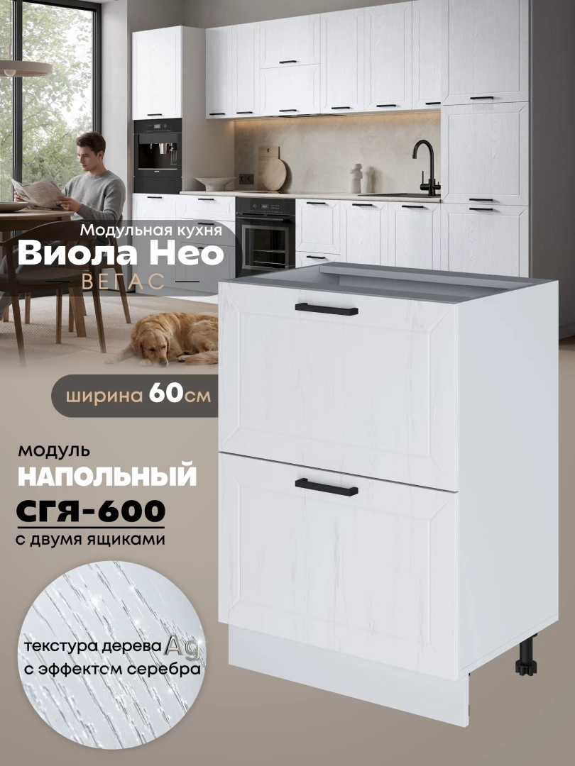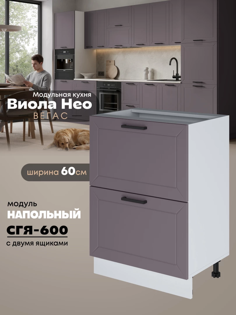 Кухонный модуль напольный с двумя выдвижными ящиками Виола Нео Вегас СГЯ-600 Матовый