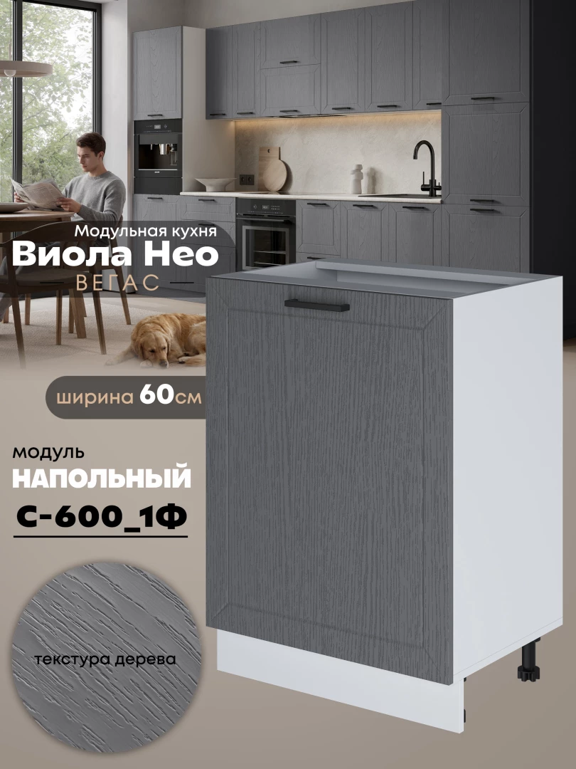 Кухонный модуль напольный с одной створкой Виола Нео Вегас С-600_1Ф Матовый