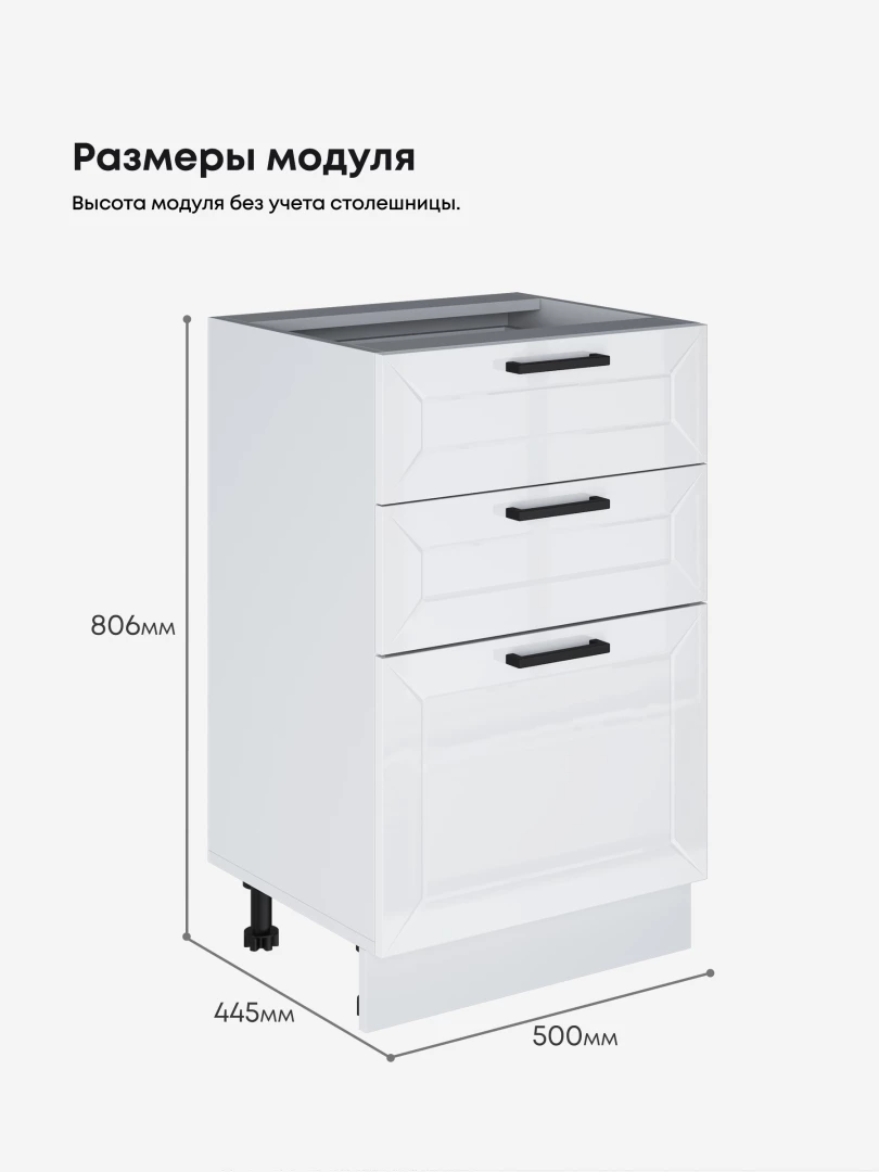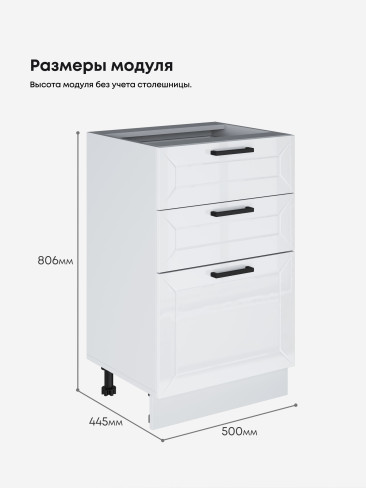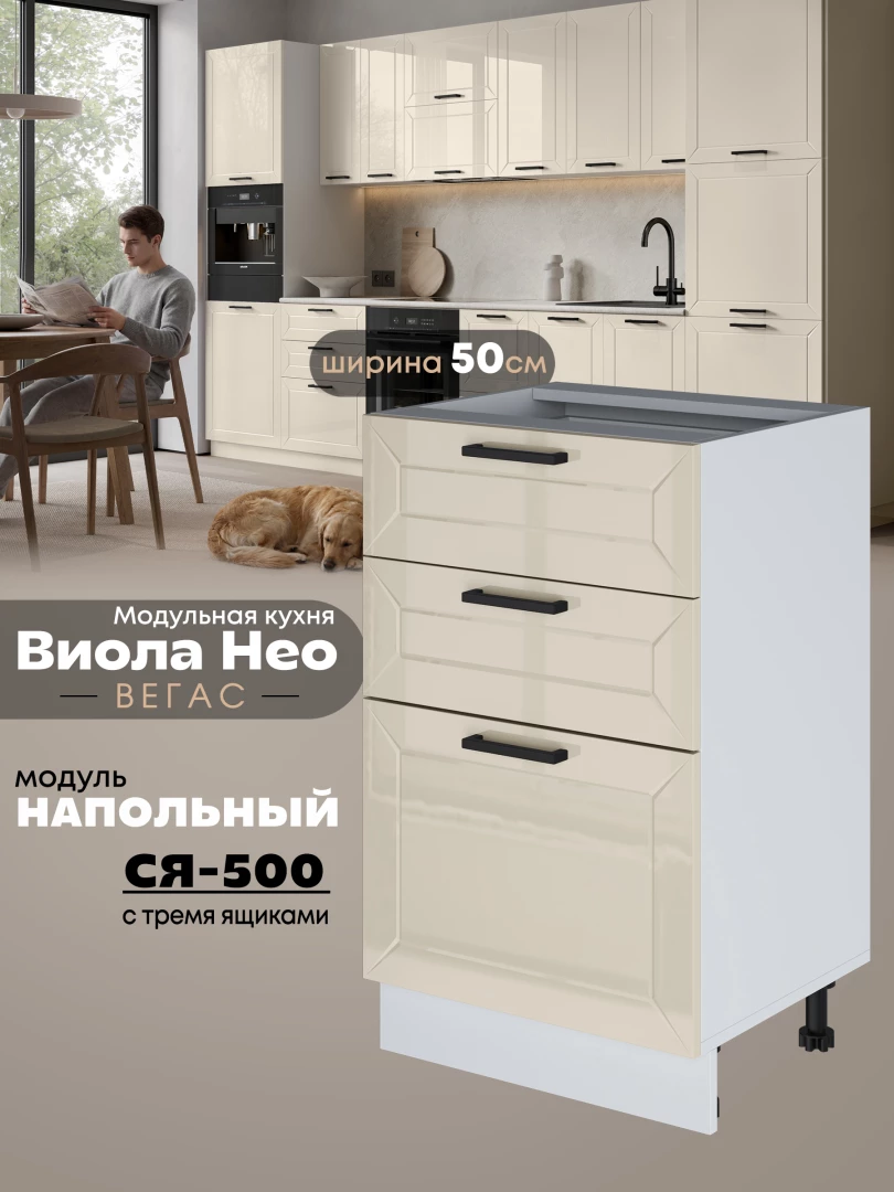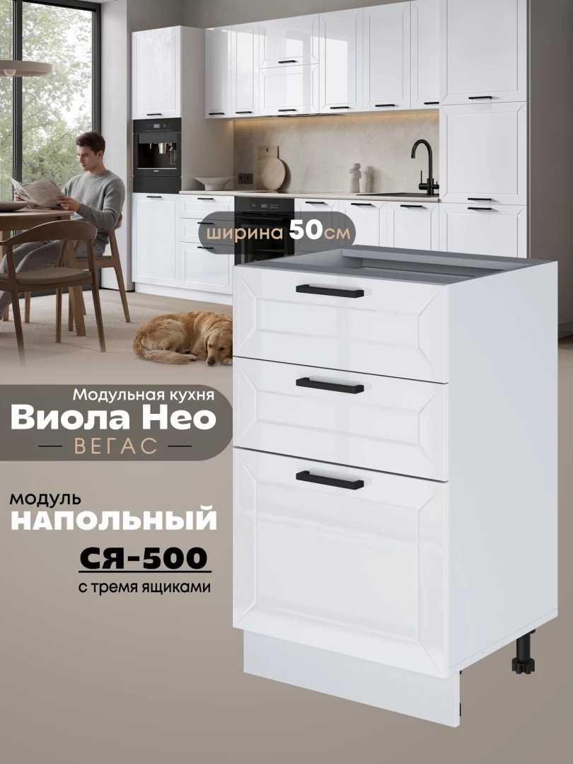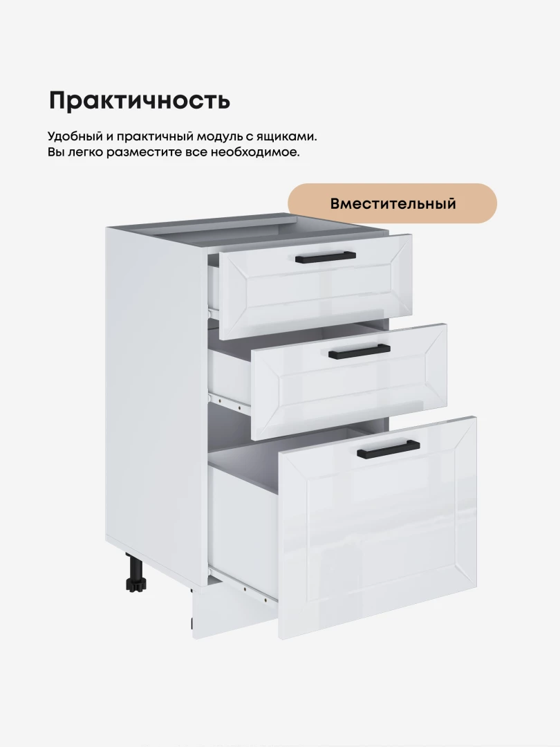 Кухонный модуль напольный с тремя выдвижными ящиками Виола Нео Вегас С3Я-500 Глянцевый