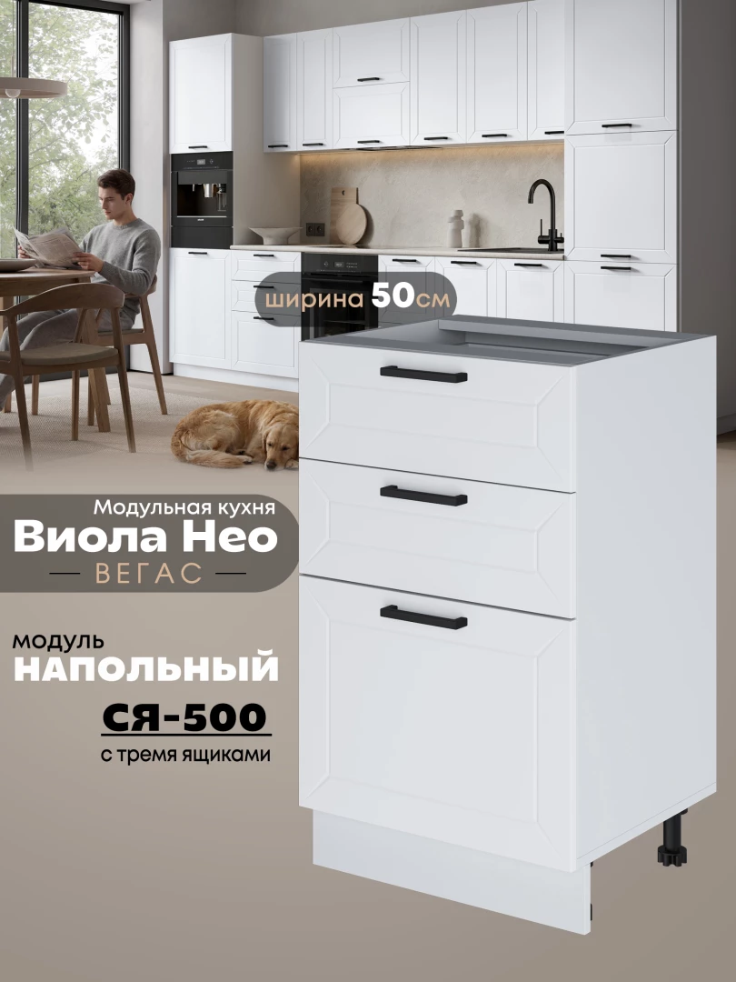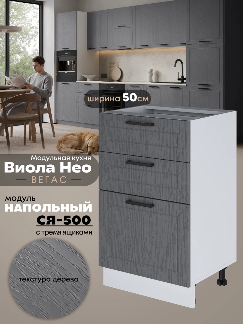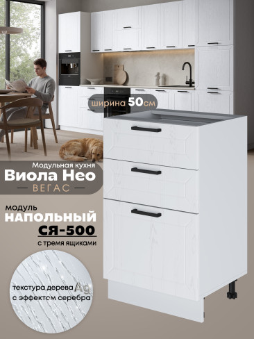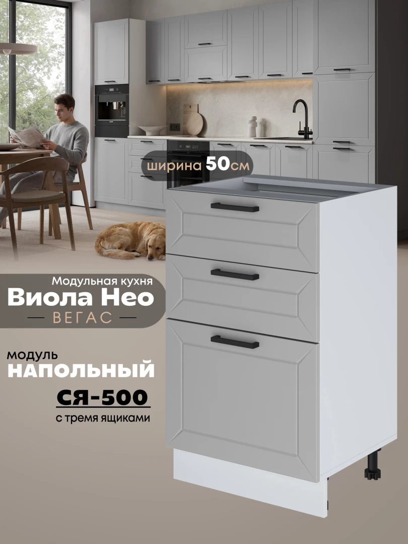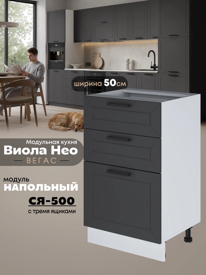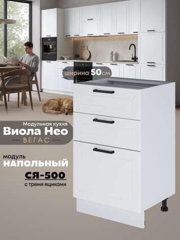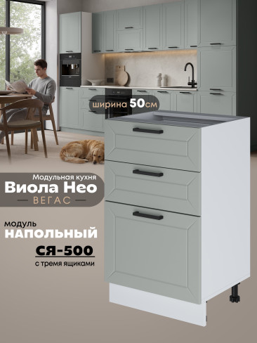 Кухонный модуль напольный с тремя выдвижными ящиками Виола Нео Вегас С3Я-500 Матовый