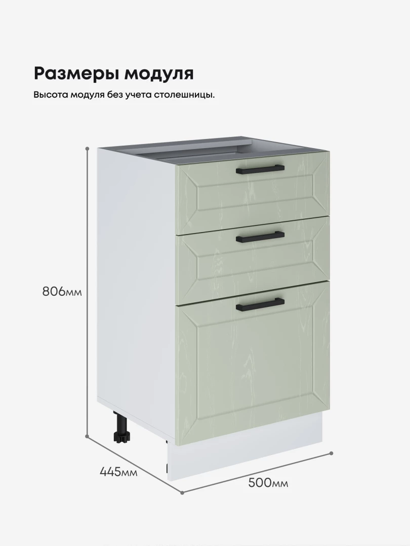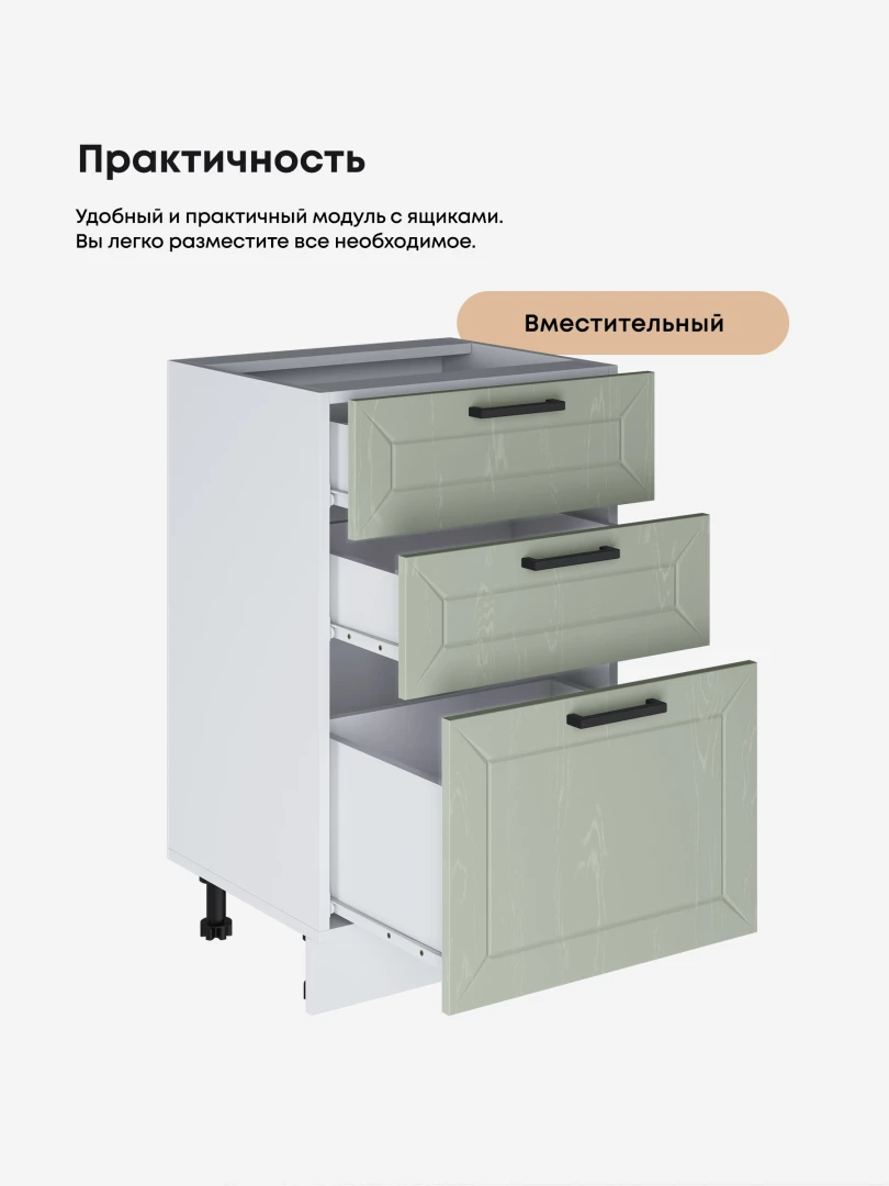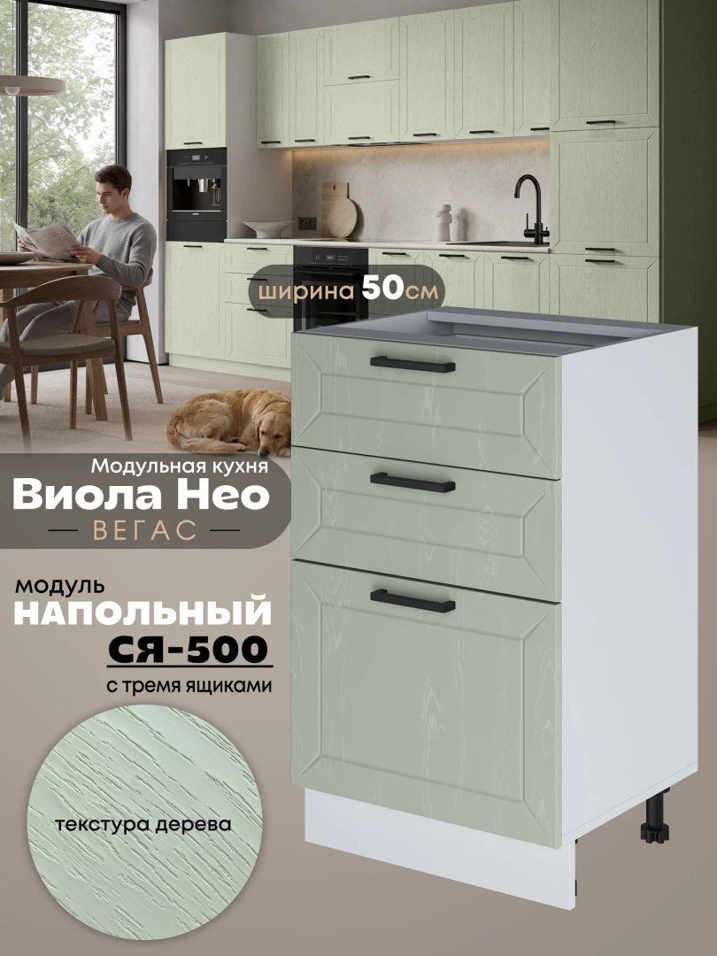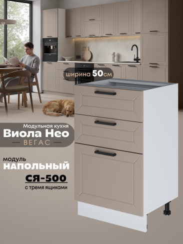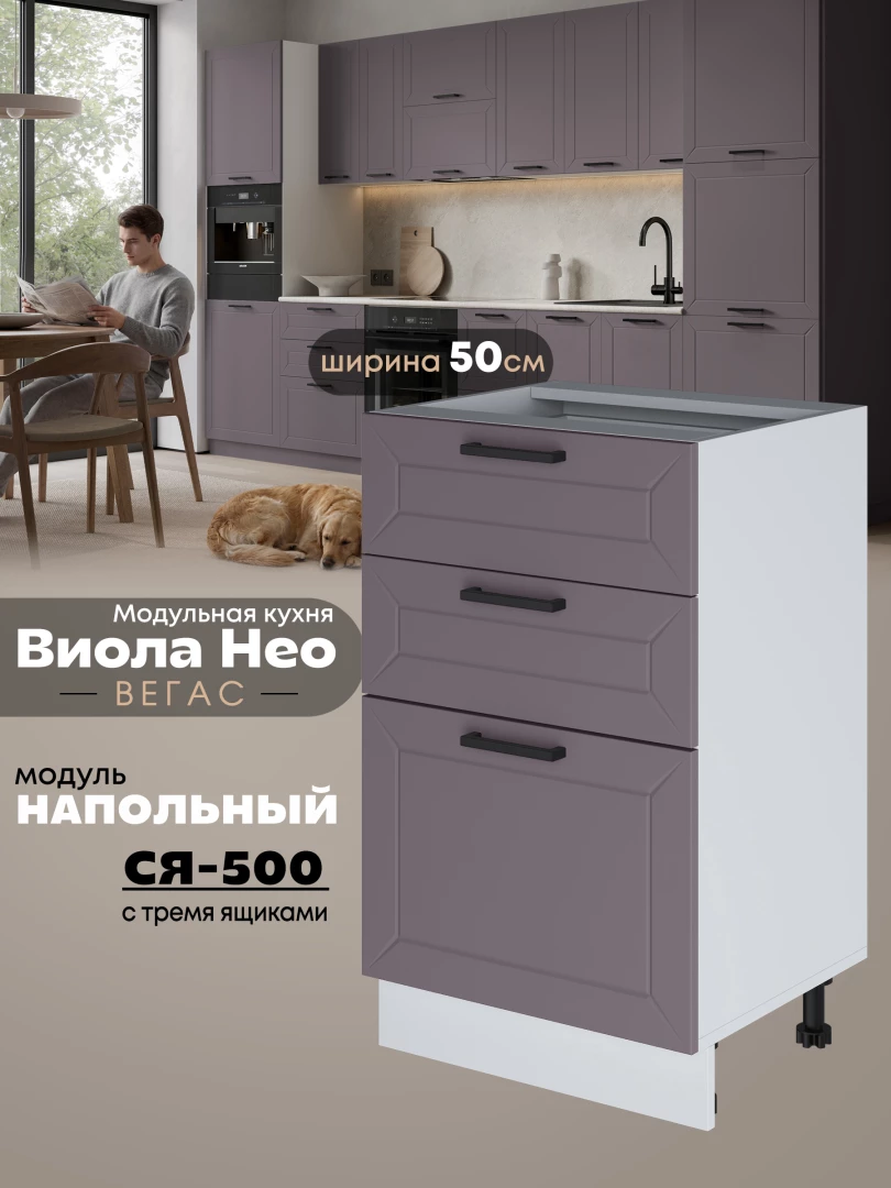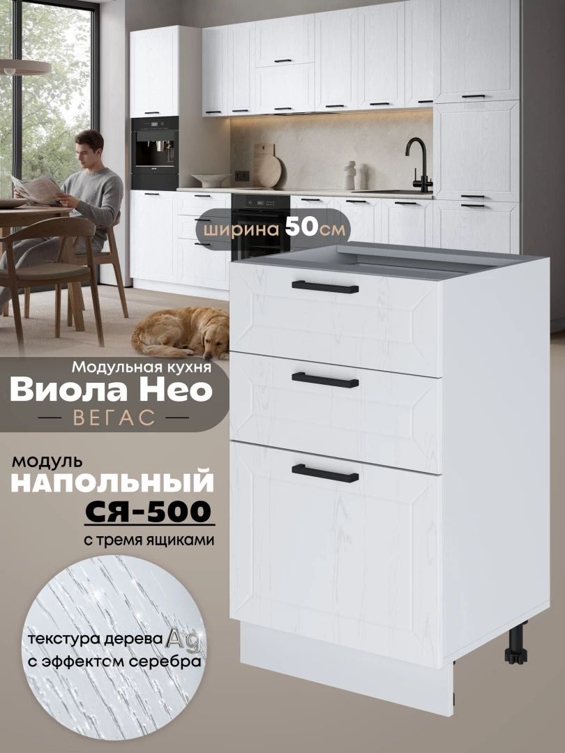 Кухонный модуль напольный с тремя выдвижными ящиками Виола Нео Вегас С3Я-500 Матовый