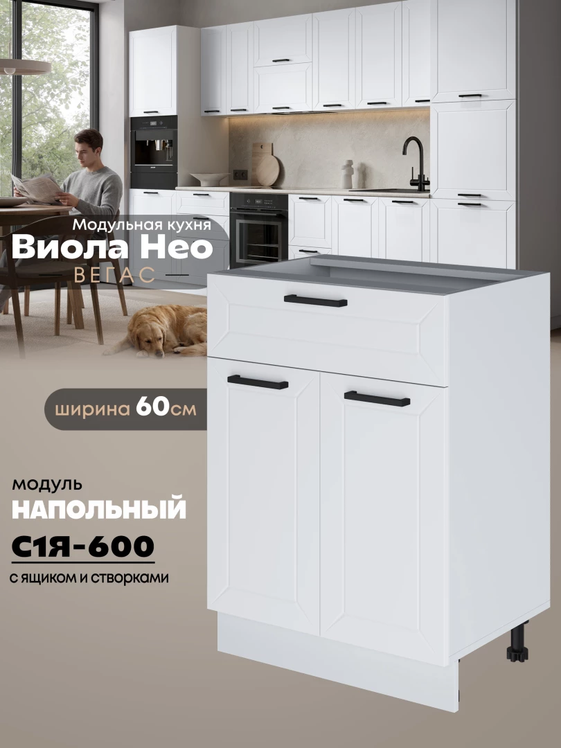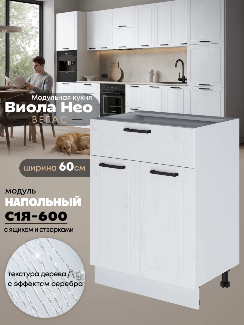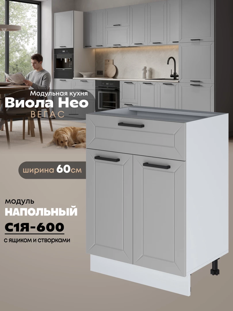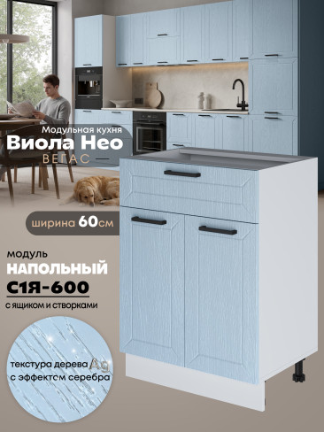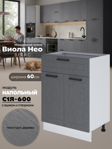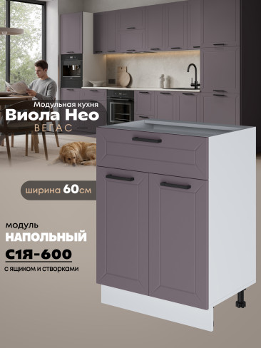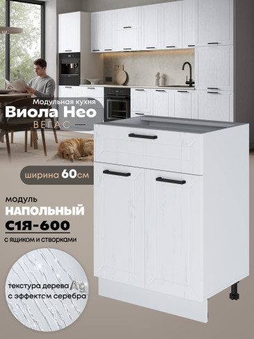 Кухонный модуль напольный с выдвижным ящиком и створками Виола Нео Вегас С1Я-600 Матовый