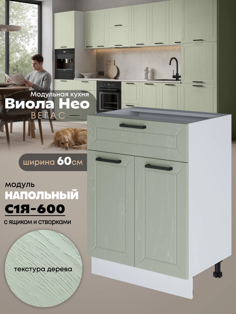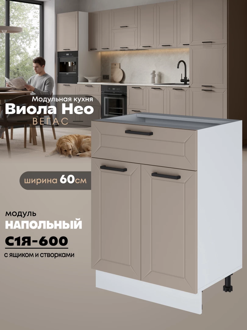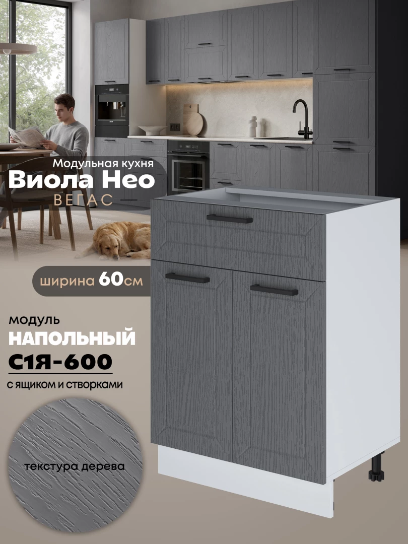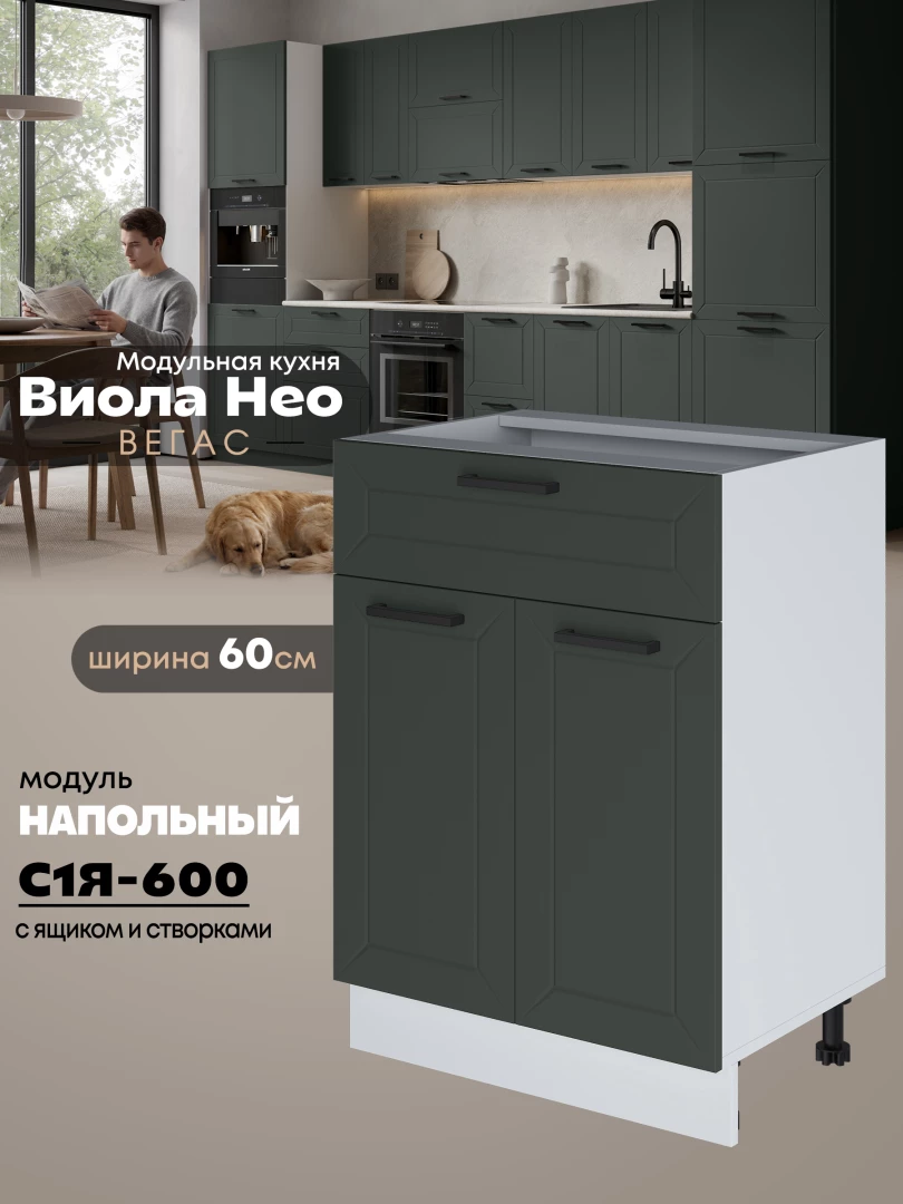 Кухонный модуль напольный с выдвижным ящиком и створками Виола Нео Вегас С1Я-600 Матовый