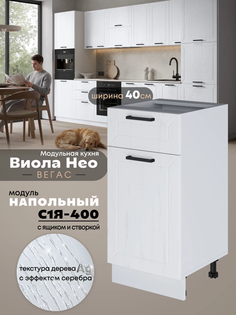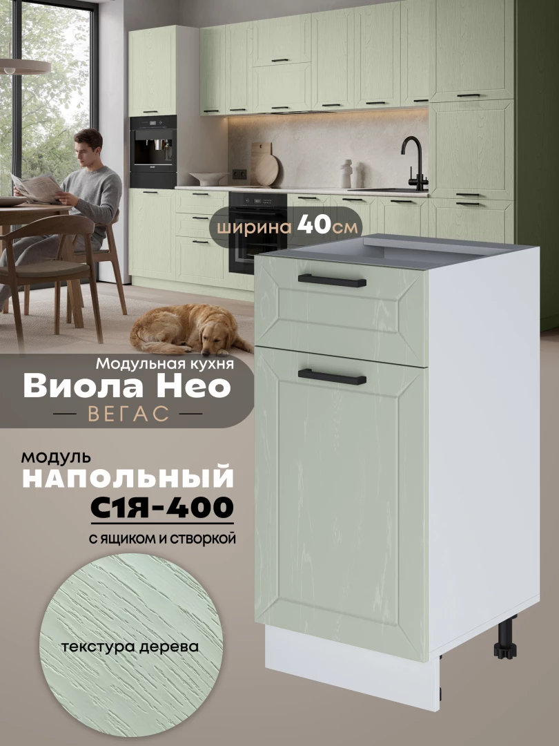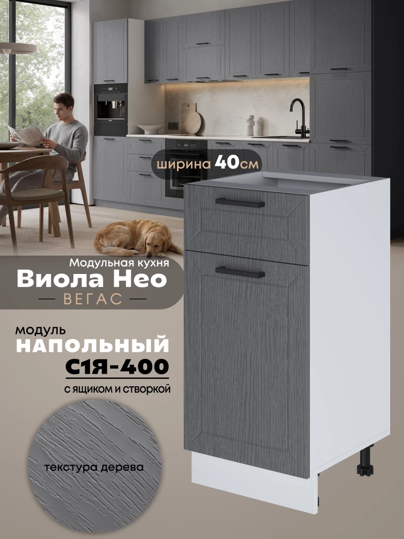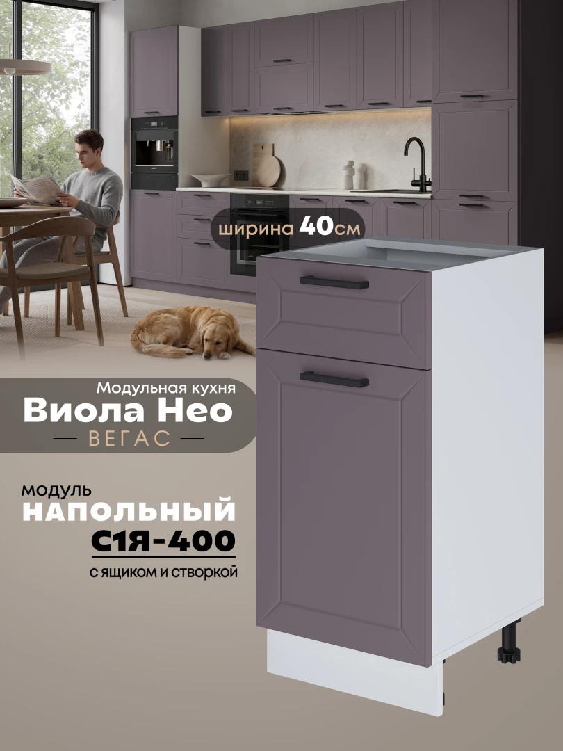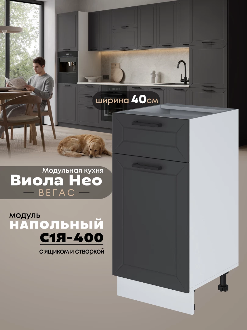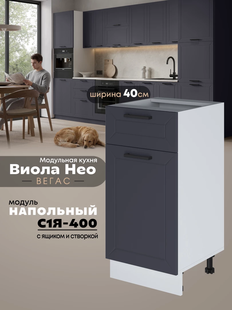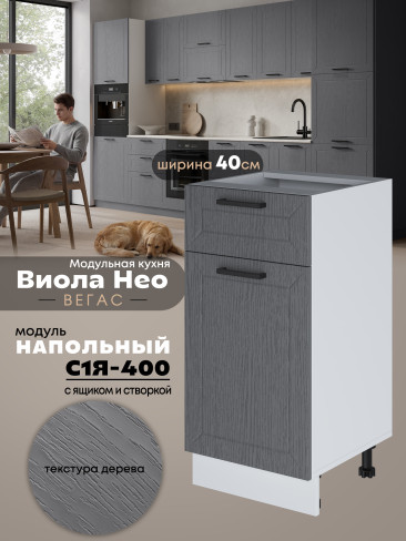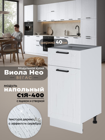 Кухонный модуль напольный с выдвижным ящиком и створкой Виола Нео Вегас С1Я-400 Матовый