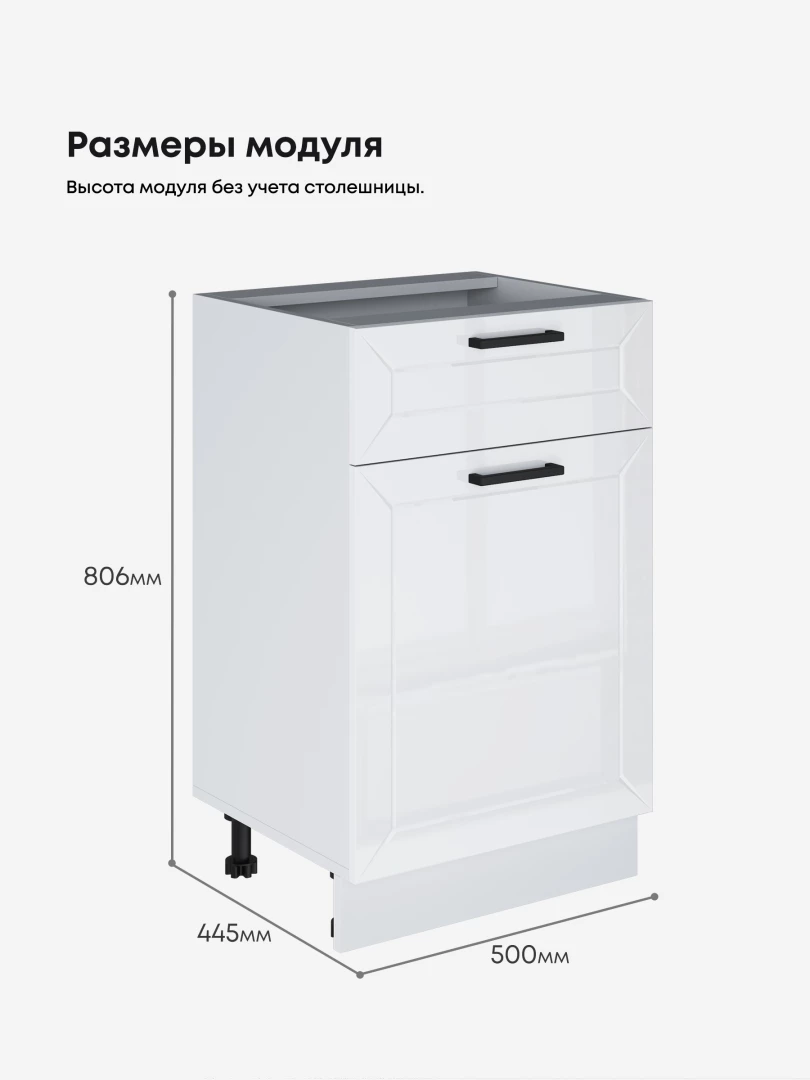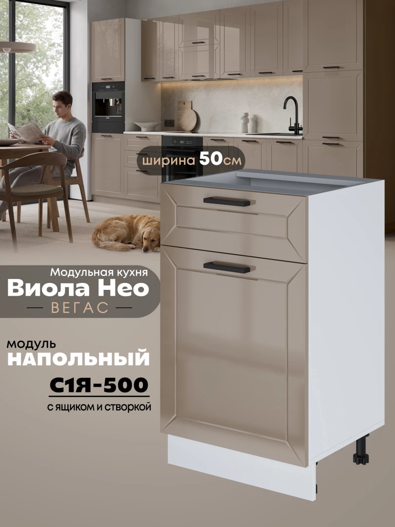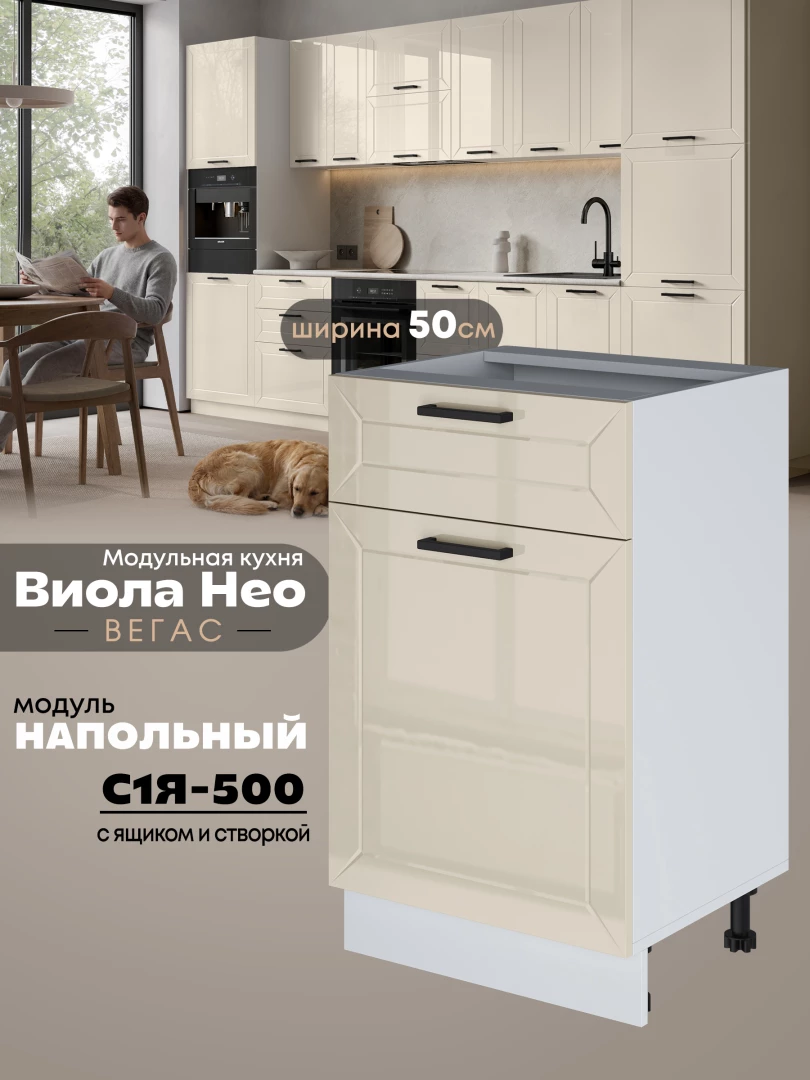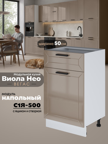 Кухонный модуль напольный с выдвижным ящиком и створкой Виола Нео Вегас С1Я-500 Глянцевый