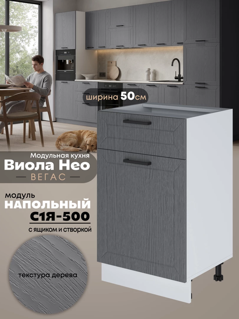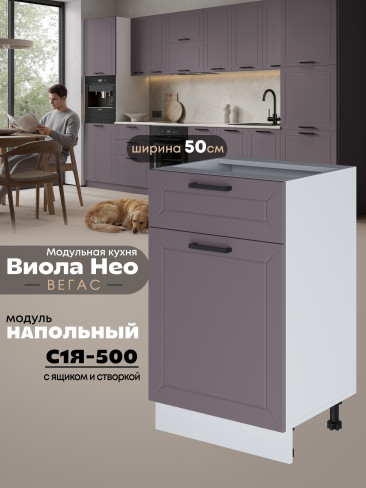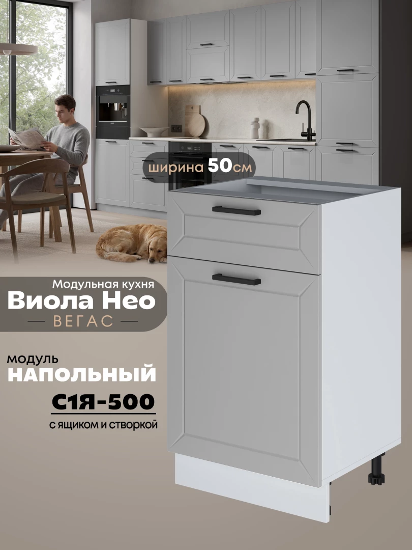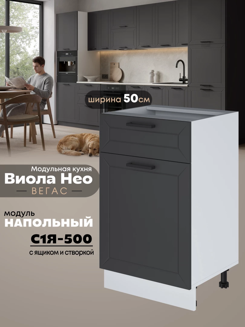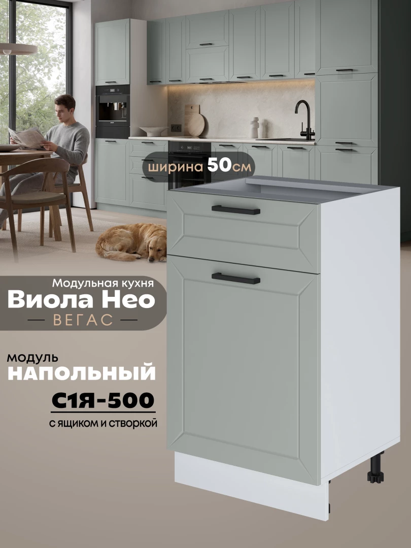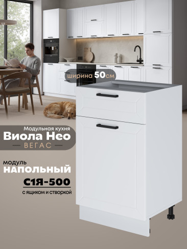 Кухонный модуль напольный с выдвижным ящиком и створкой Виола Нео Вегас С1Я-500 Матовый